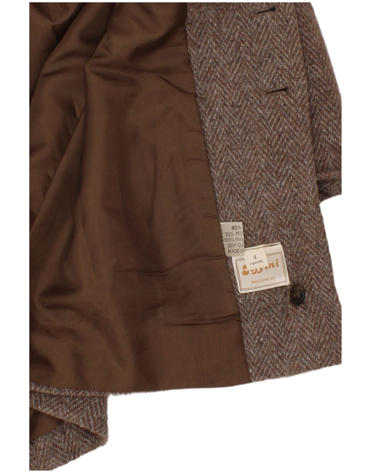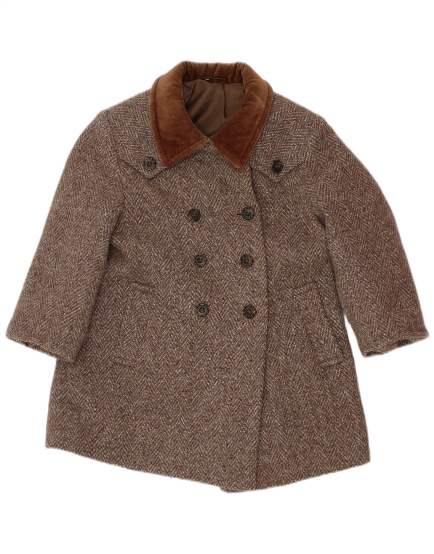 VINTAGE Baby Girls Double Breasted Coat 18-24 Months Brown Herringbone