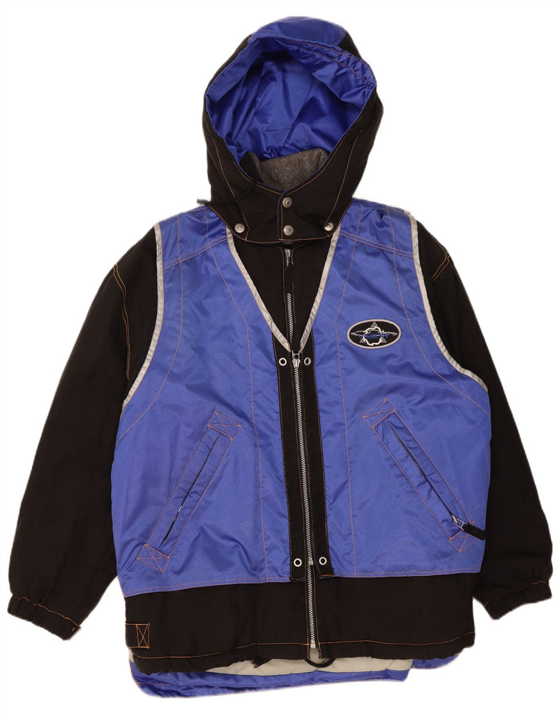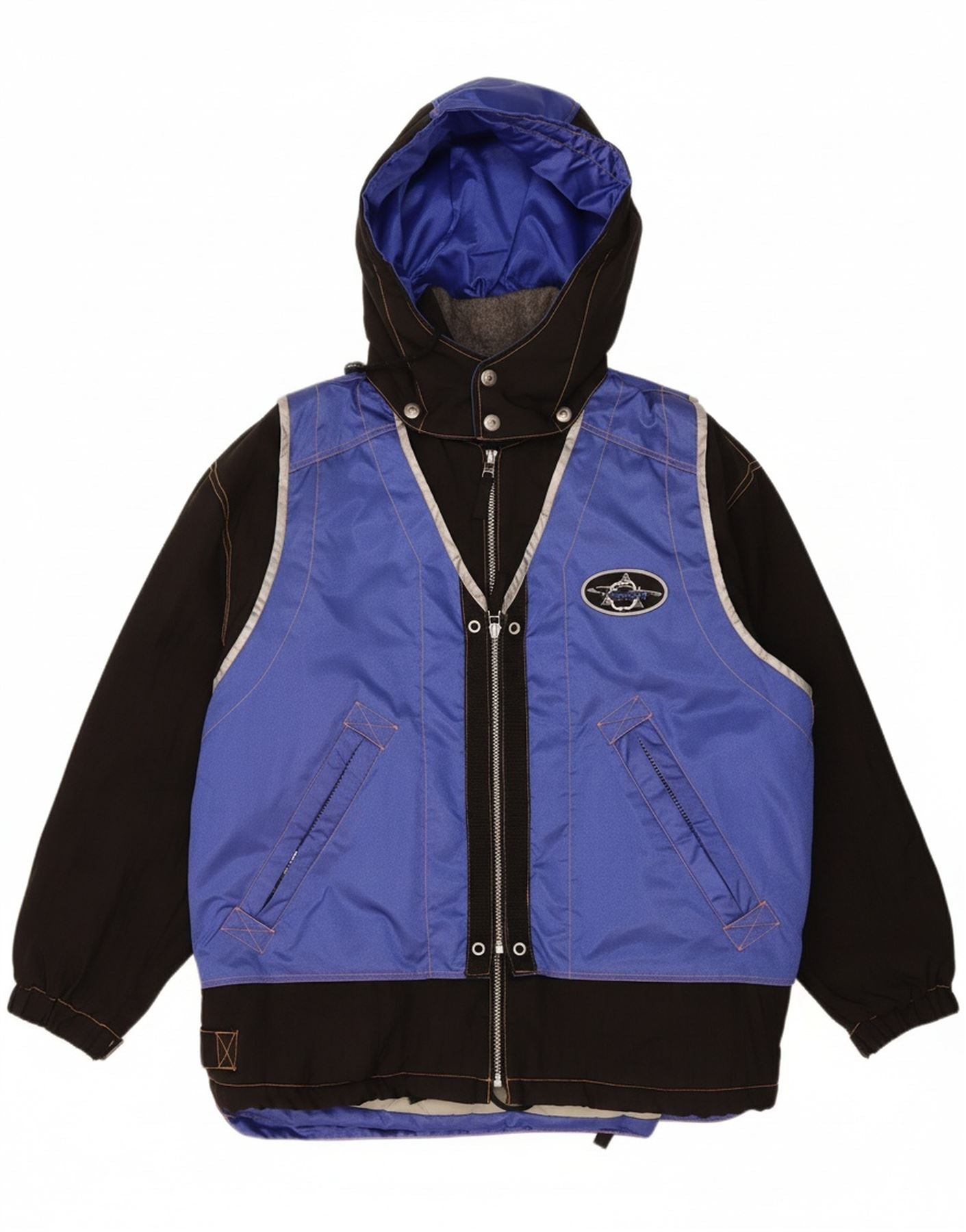 VINTAGE Boys Loose Fit Hooded Ski Jacket 15-16 Years Purple Colourblock