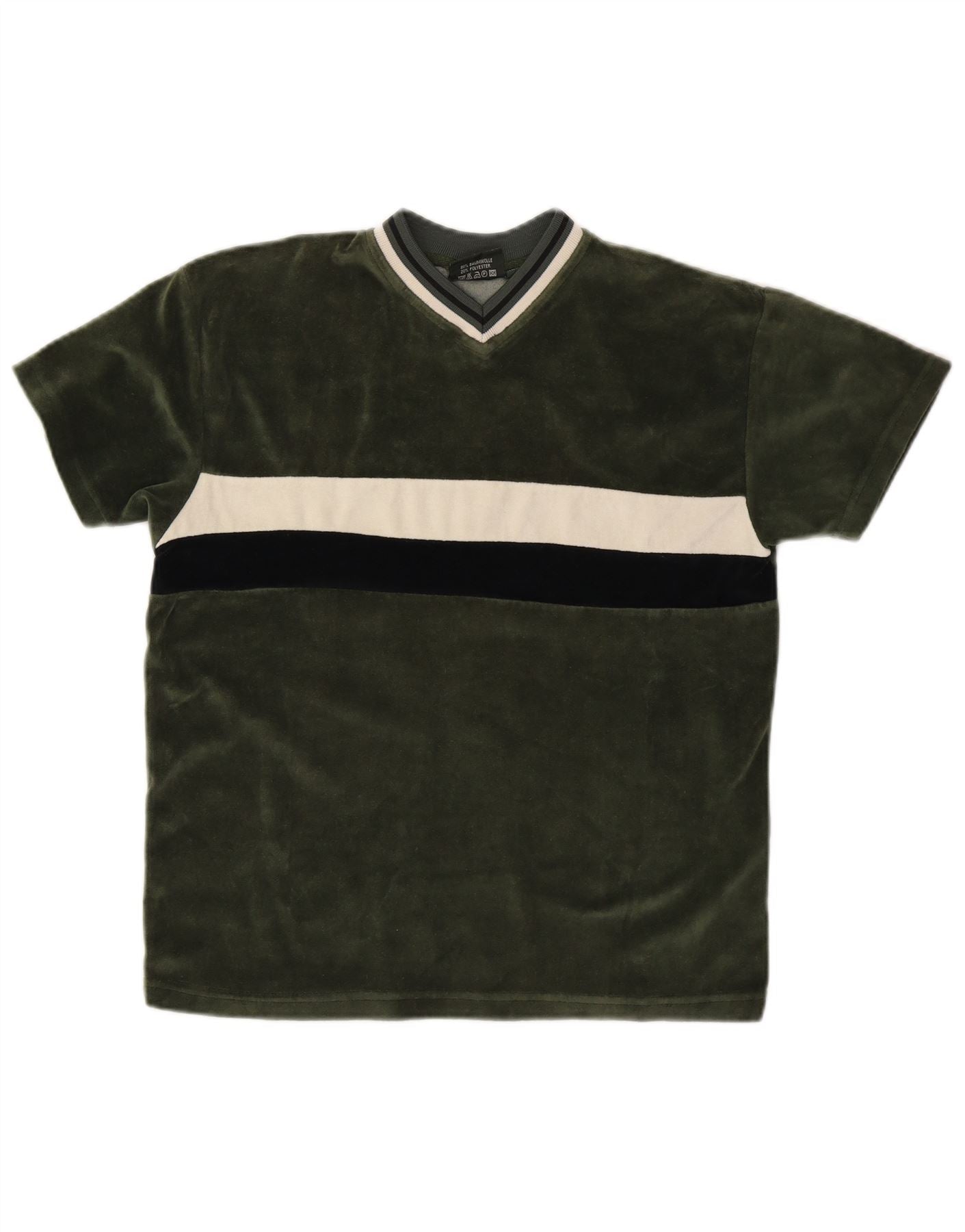VINTAGE Boys T-Shirt Top 12-13 Years Medium Green Colourblock Cotton