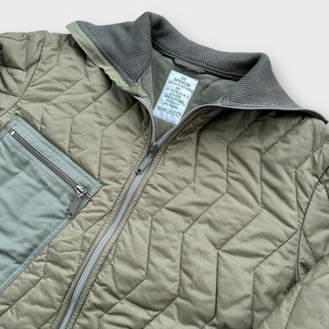Vintage 1997 zip up German military liner jacket in green with pockets in the front