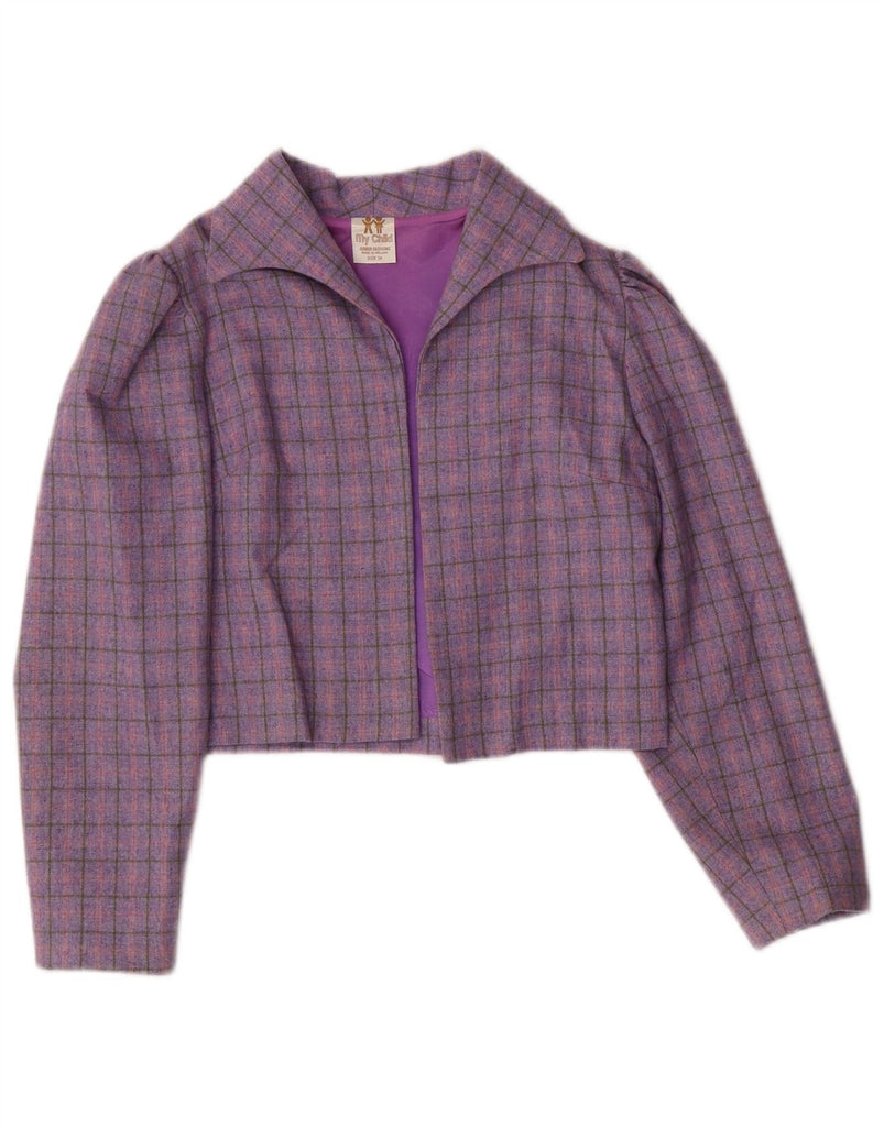 VINTAGE Girls 2 Piece Skirt Set 8-9 Years W24 Purple Check Polyester