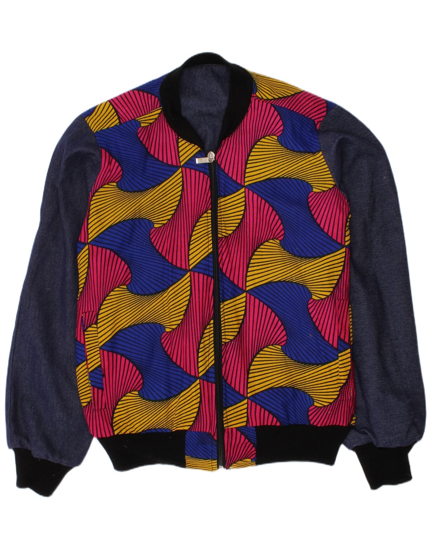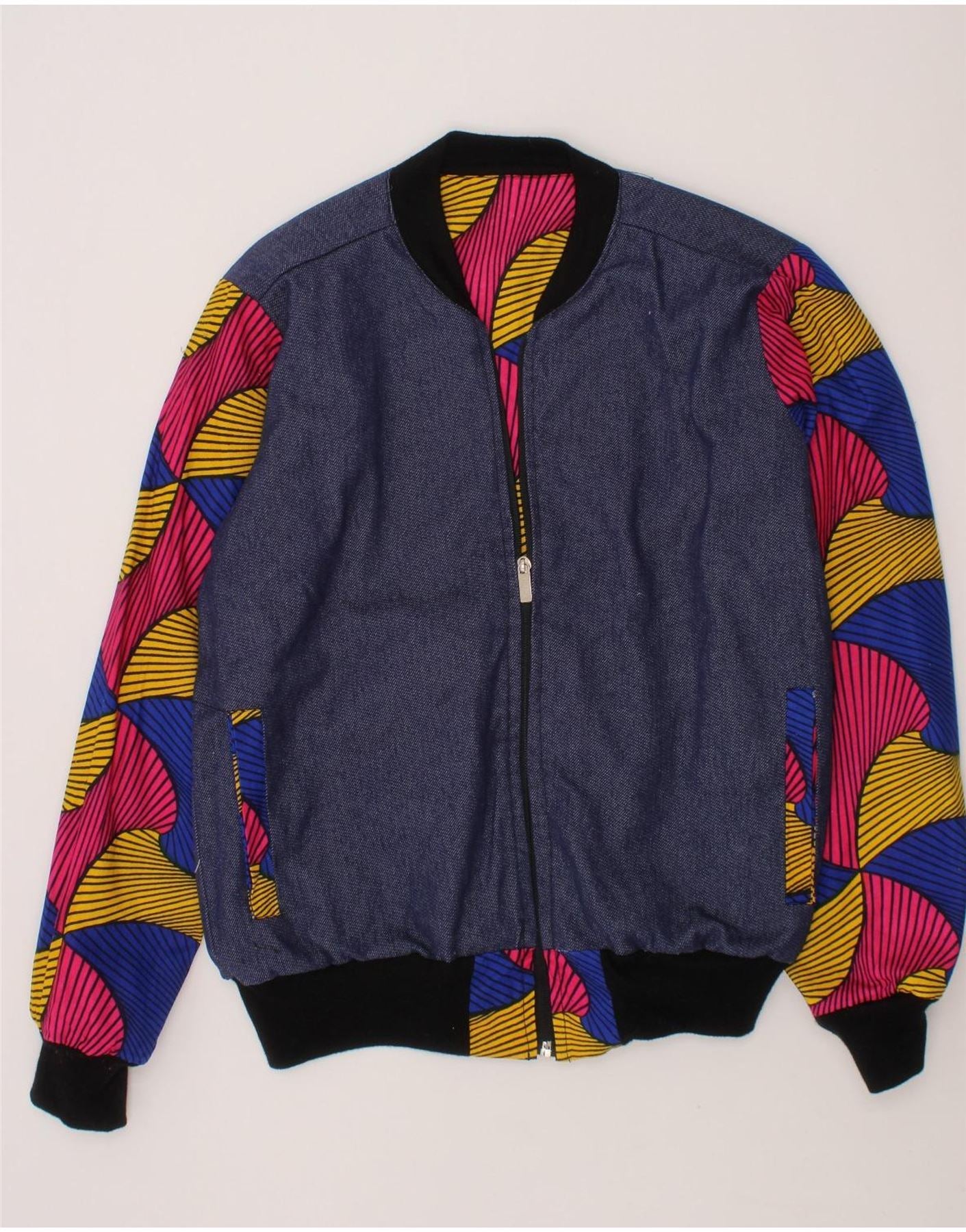 VINTAGE Girls Abstract Pattern Bomber Jacket 10-11 Years Navy Blue