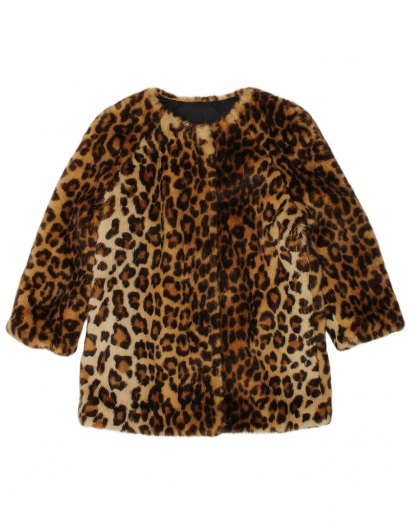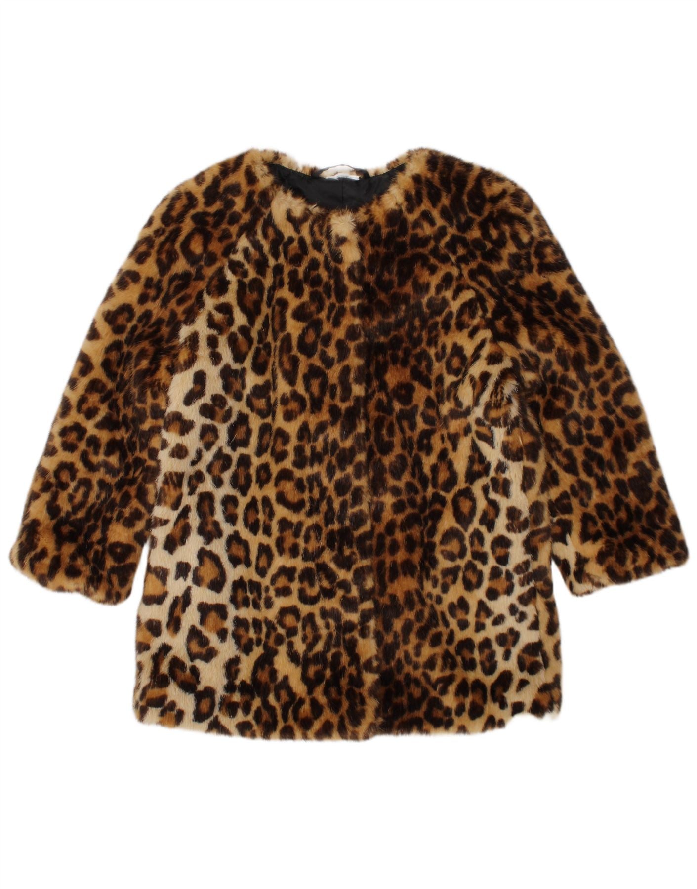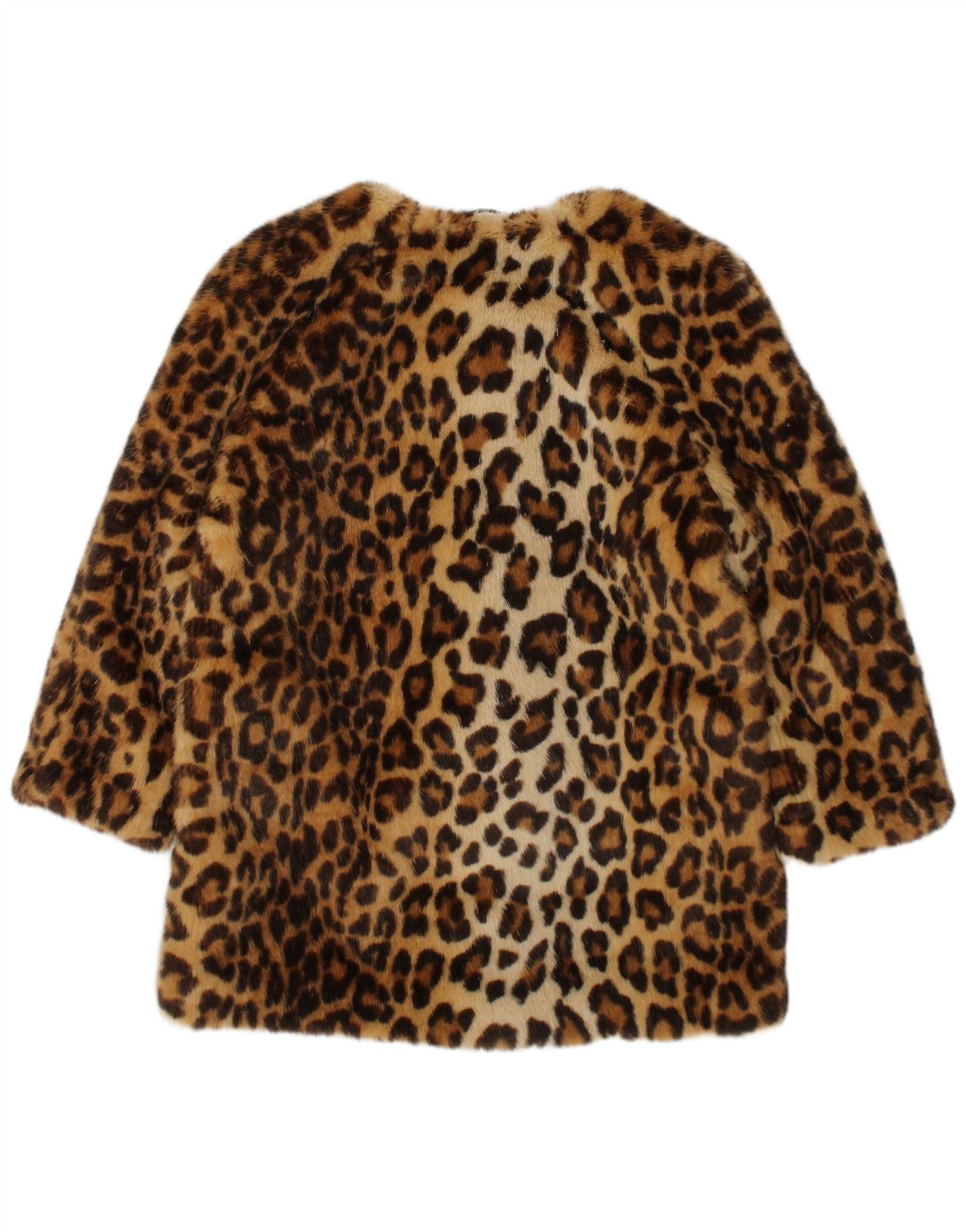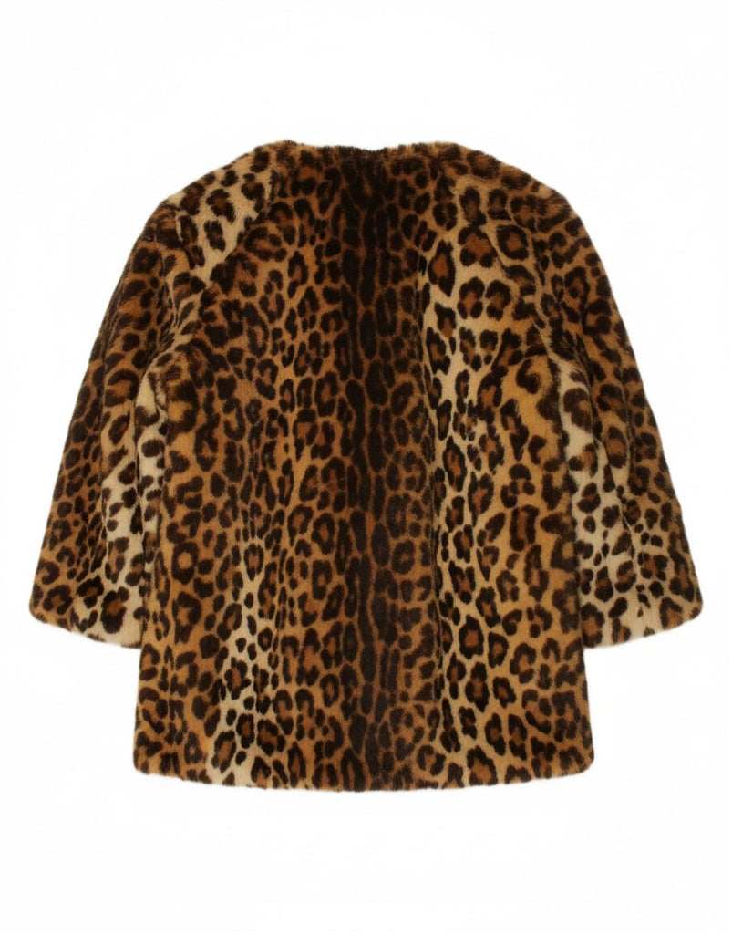 VINTAGE Girls Faux Fur Overcoat 5-6 Years Brown Animal Print