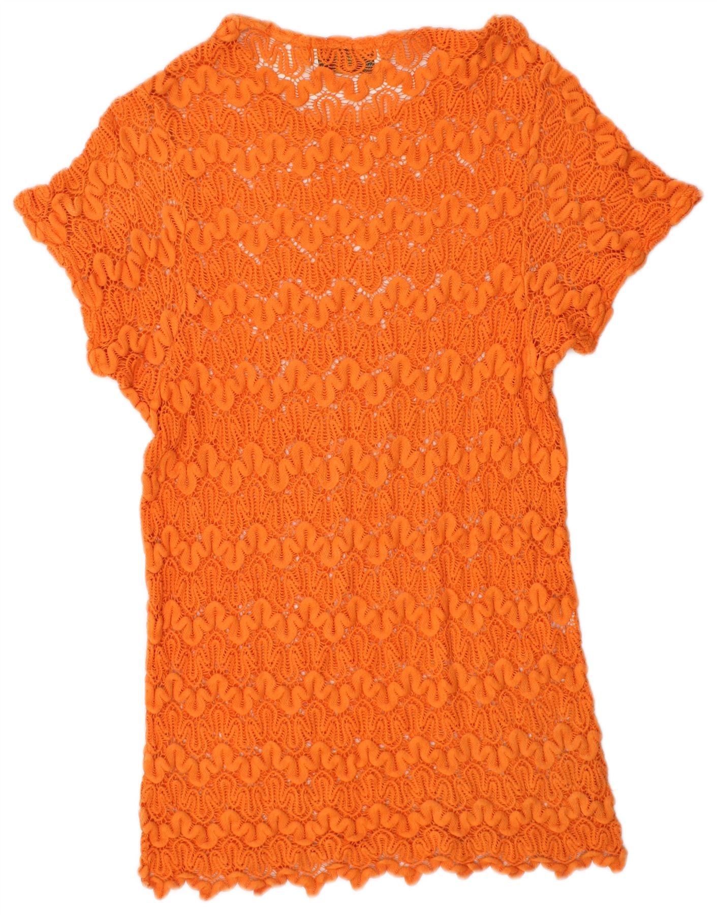VINTAGE Girls See Through Crochet Tunic Dress 11-12 Years Large Orange