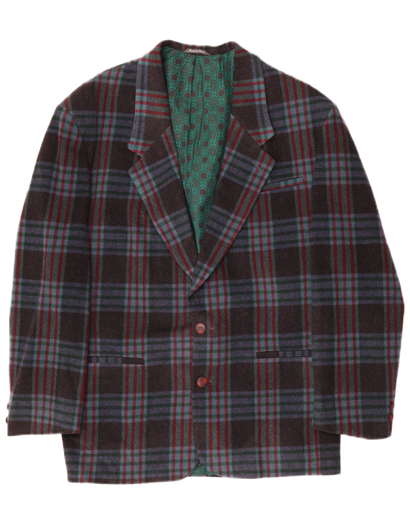 Vintage Mens 2 Button Blazer Jacket IT 48 Medium Navy Blue Check Wool