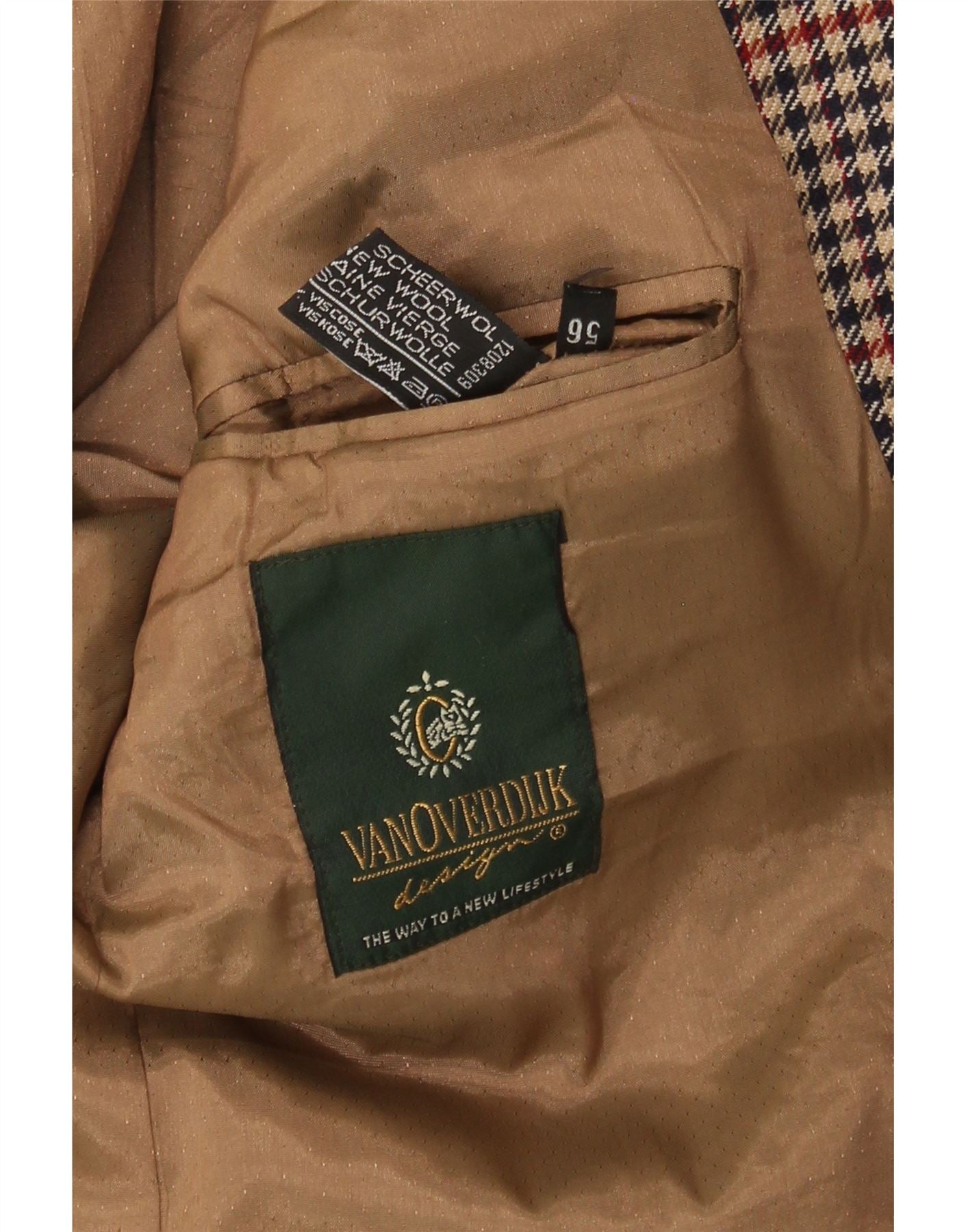 VINTAGE Mens 2 Button Blazer Jacket IT 56 3XL Beige Houndstooth Wool
