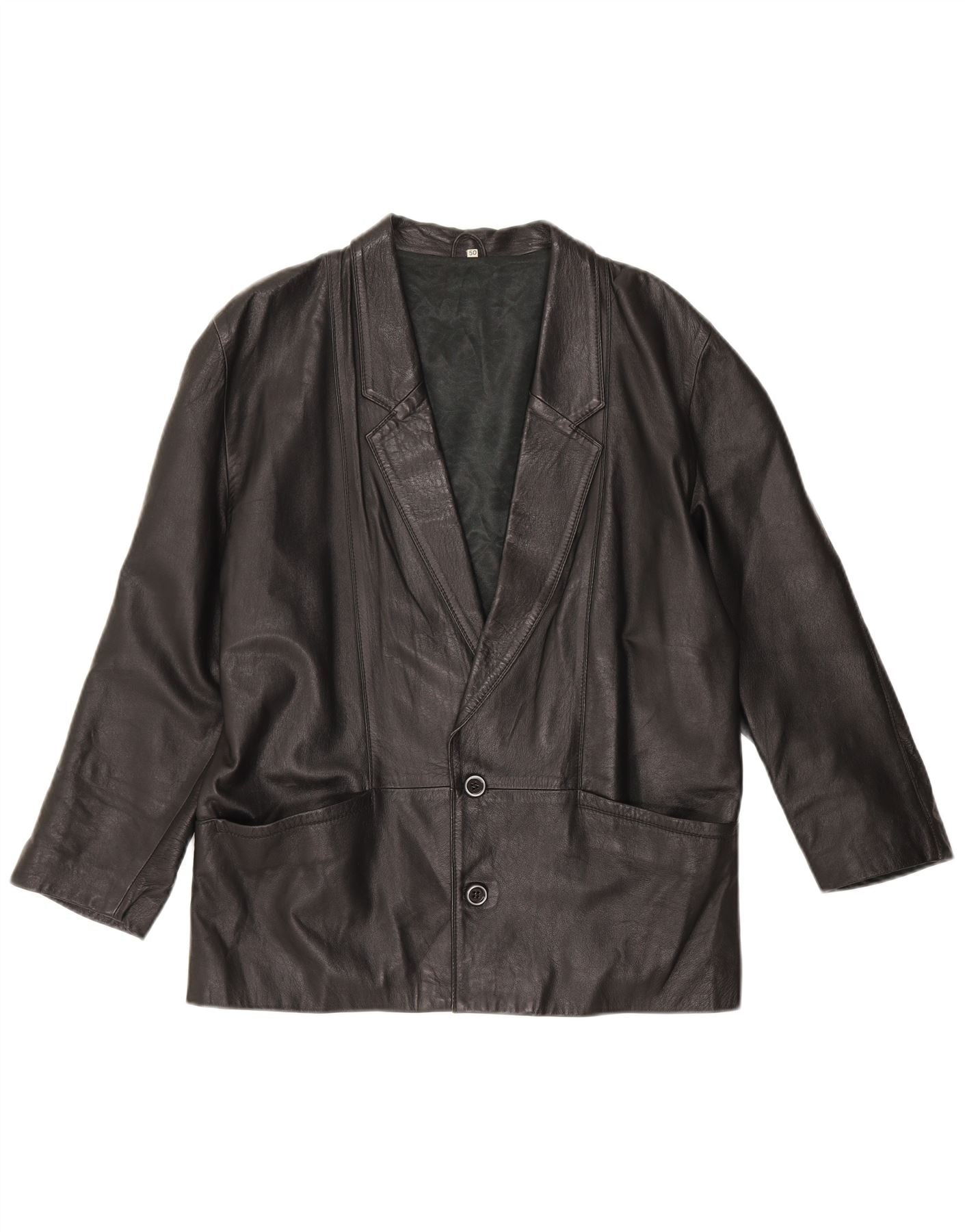VINTAGE Mens 2 Button Leather Blazer Jacket IT 50 Large Black Leather