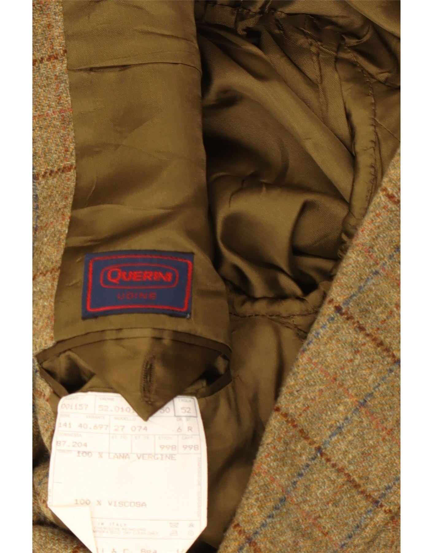 VINTAGE Mens 3 Button Blazer Jacket IT 52 XL Khaki Check Wool