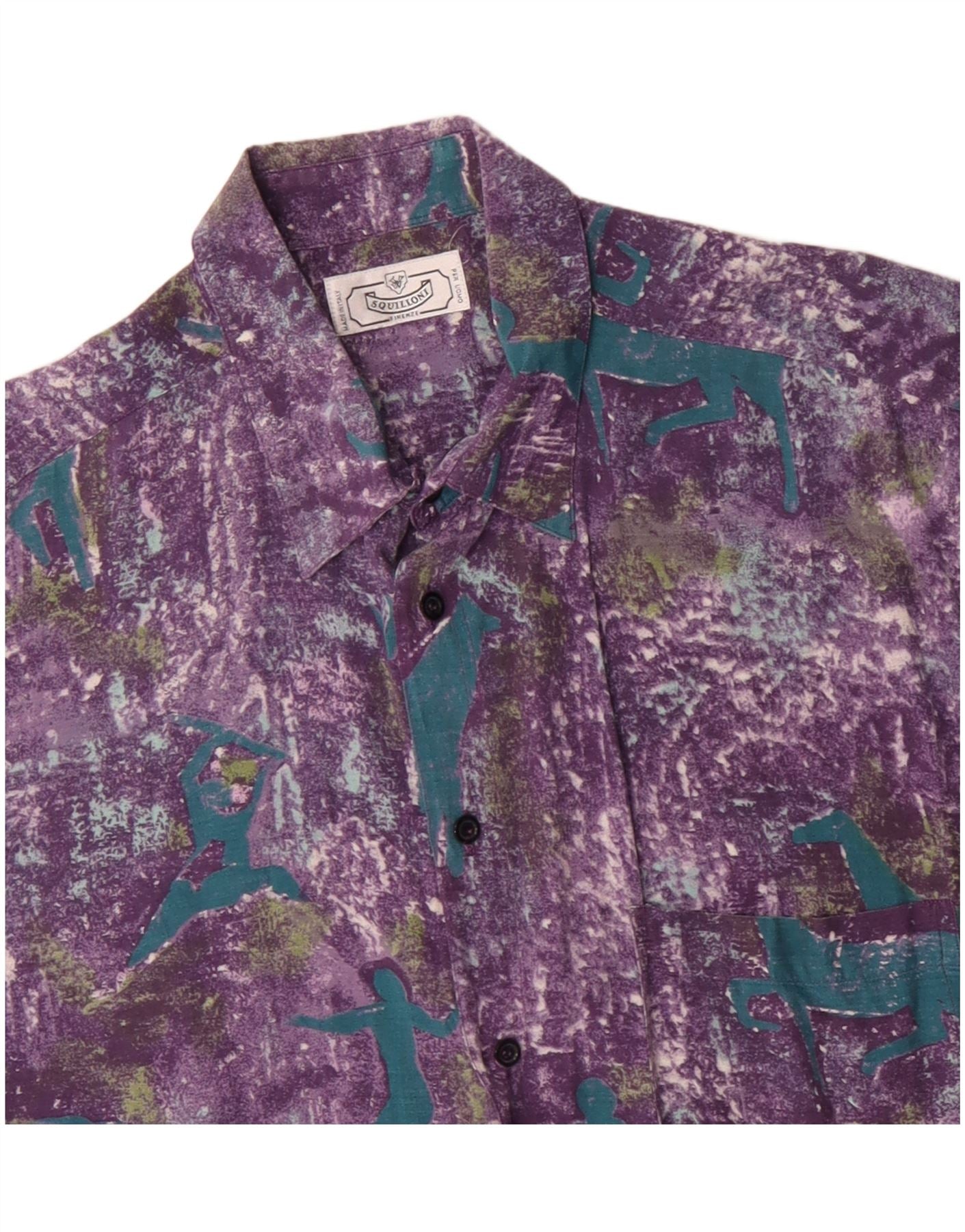 Vintage Mens Abstract Pattern Short Sleeve Shirt Large Purple Viscose