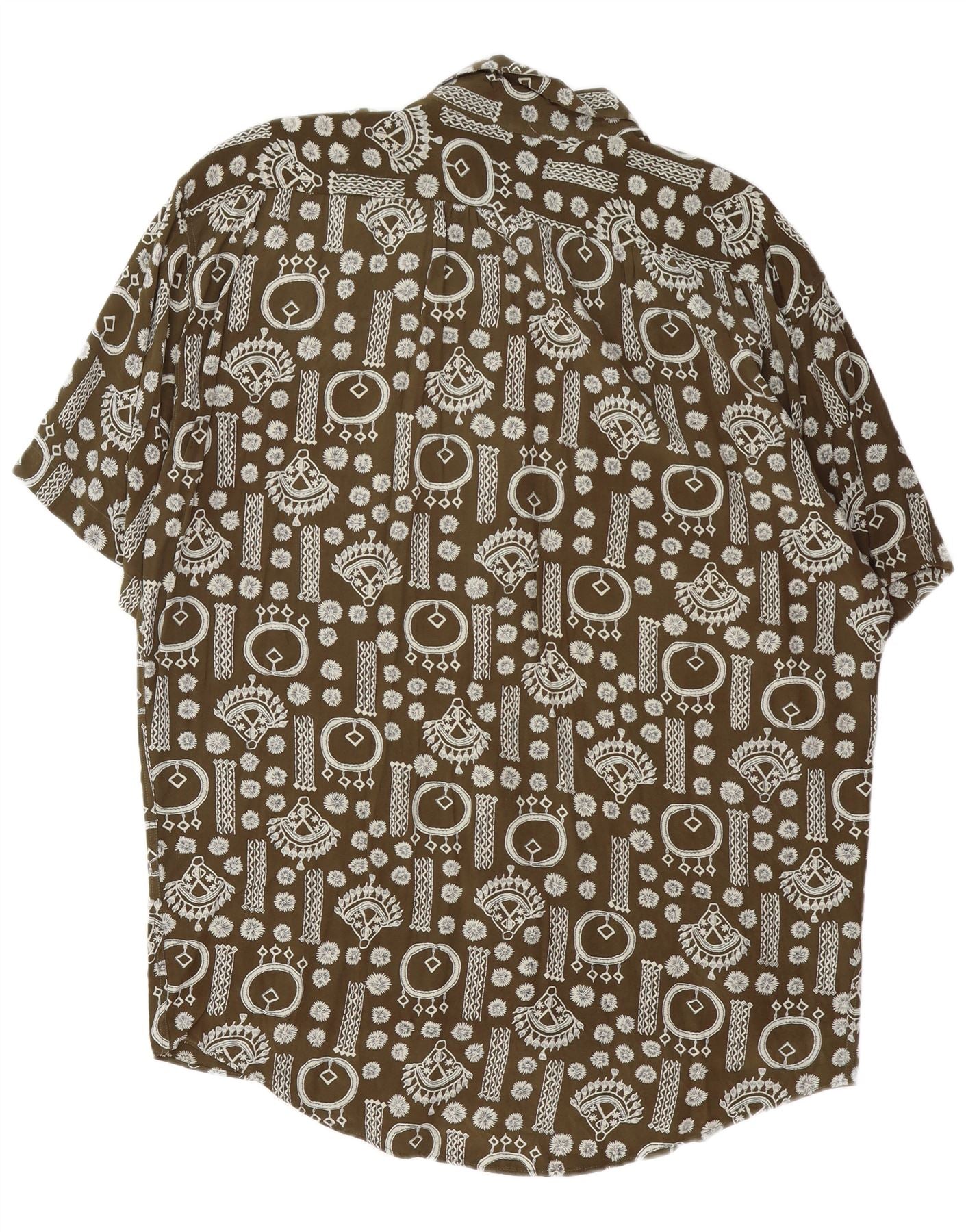 Vintage Mens Abstract Pattern Short Sleeve Shirt XL Khaki