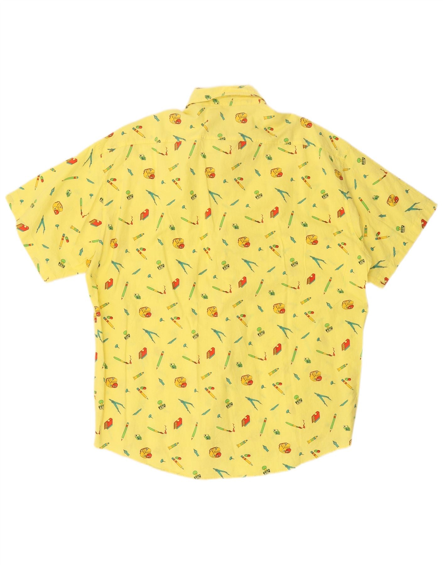 VINTAGE Mens Abstract Pattern Short Sleeve Shirt XL Yellow Cotton