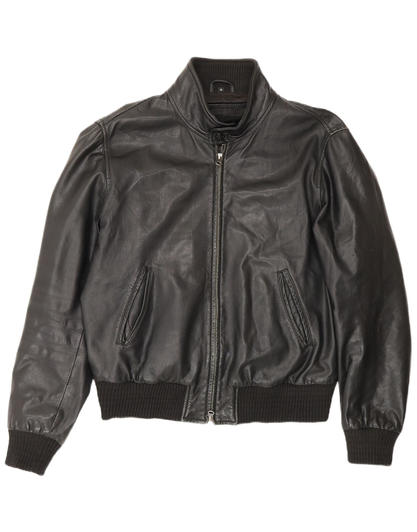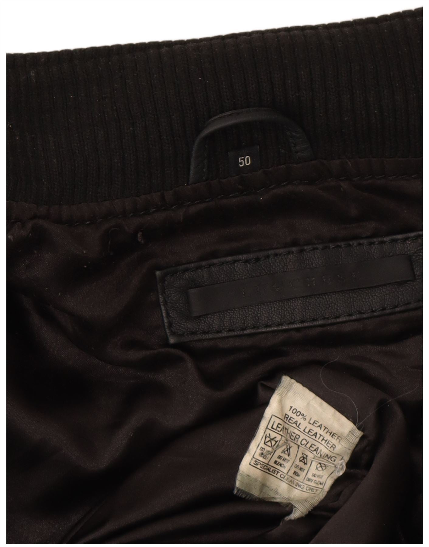 Vintage Mens Bomber Leather Jacket IT 50 Large Black Leather