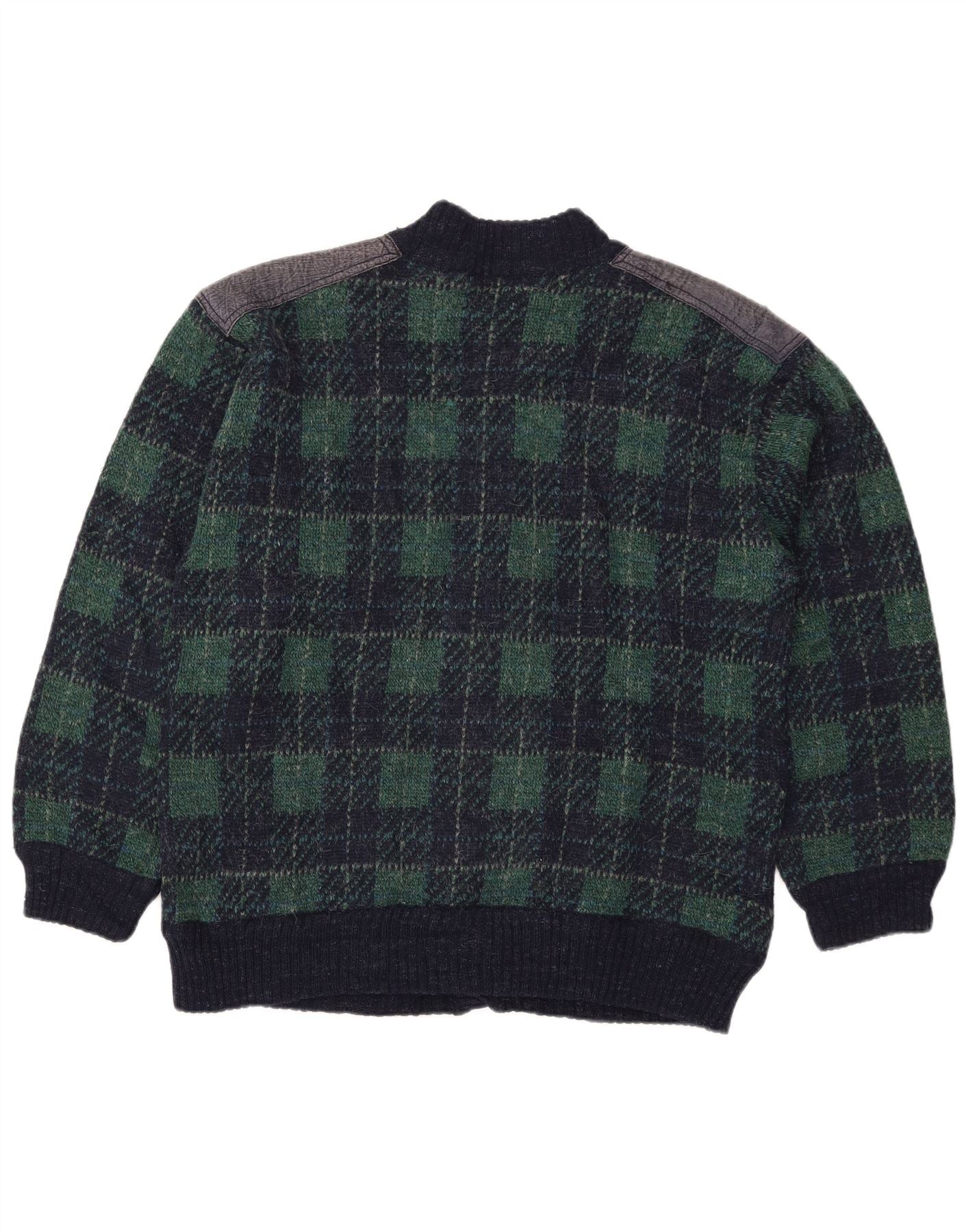 Vintage Mens Cardigan Sweater IT 54 XL Navy Blue Check Wool