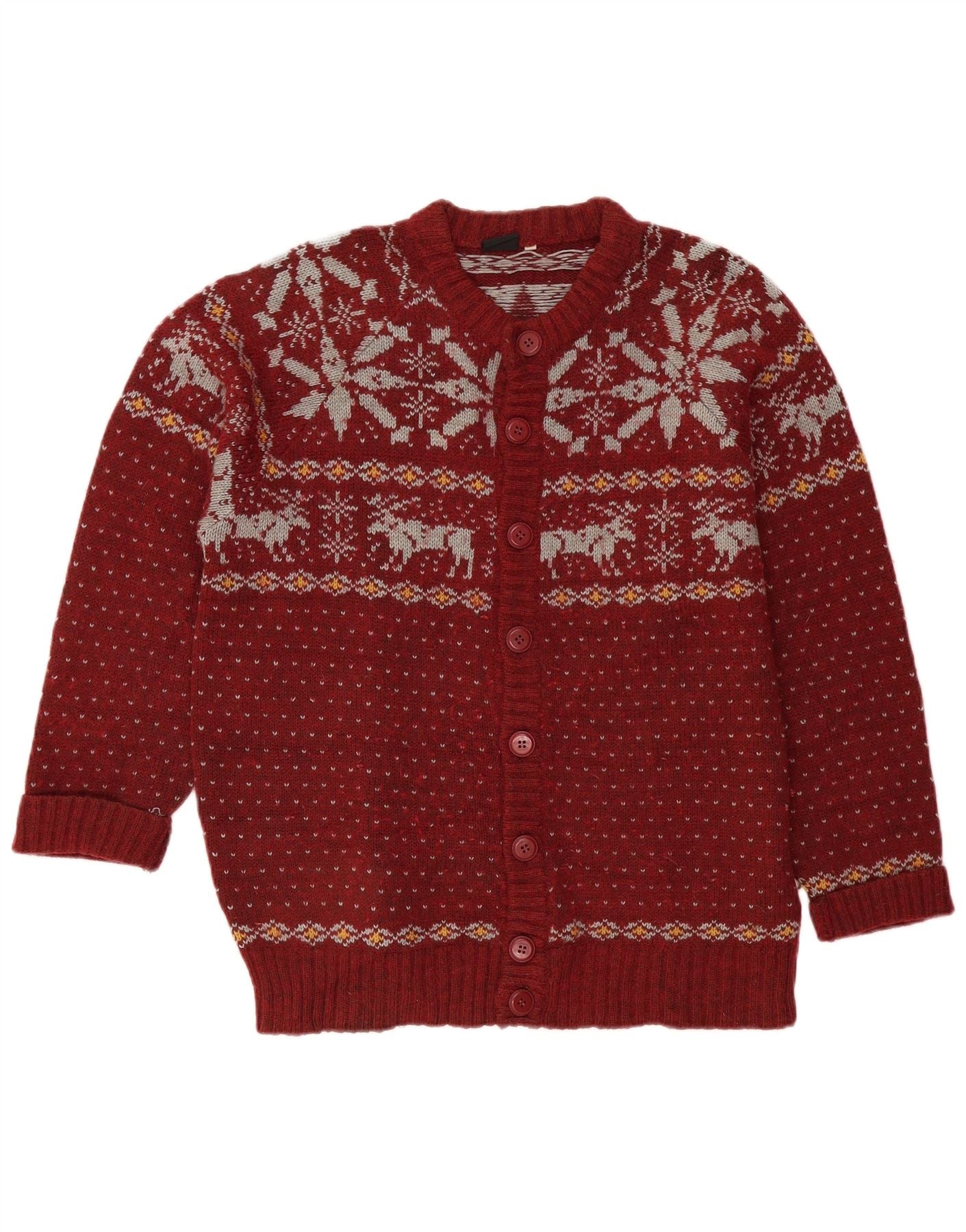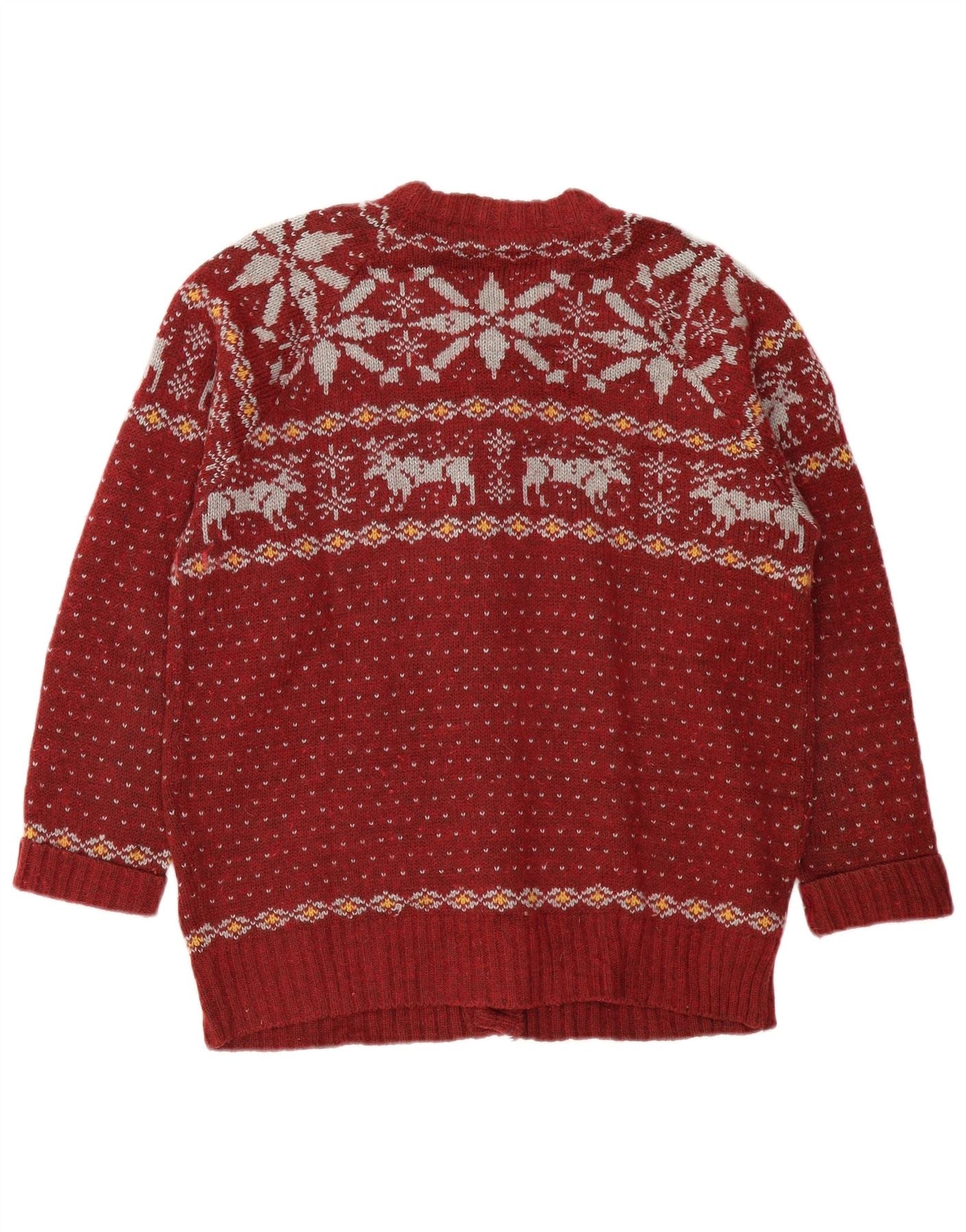 VINTAGE Mens Cardigan Sweater Large Burgundy Fair Isle Wool
