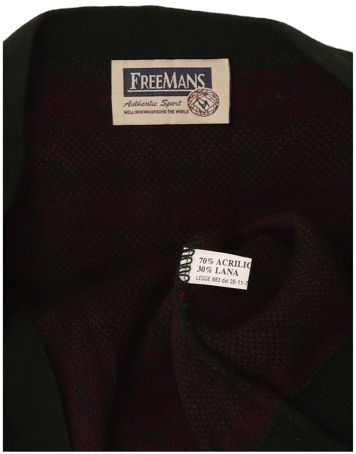 Vintage Mens Cardigan Sweater Large Green Fair Isle Acrylic