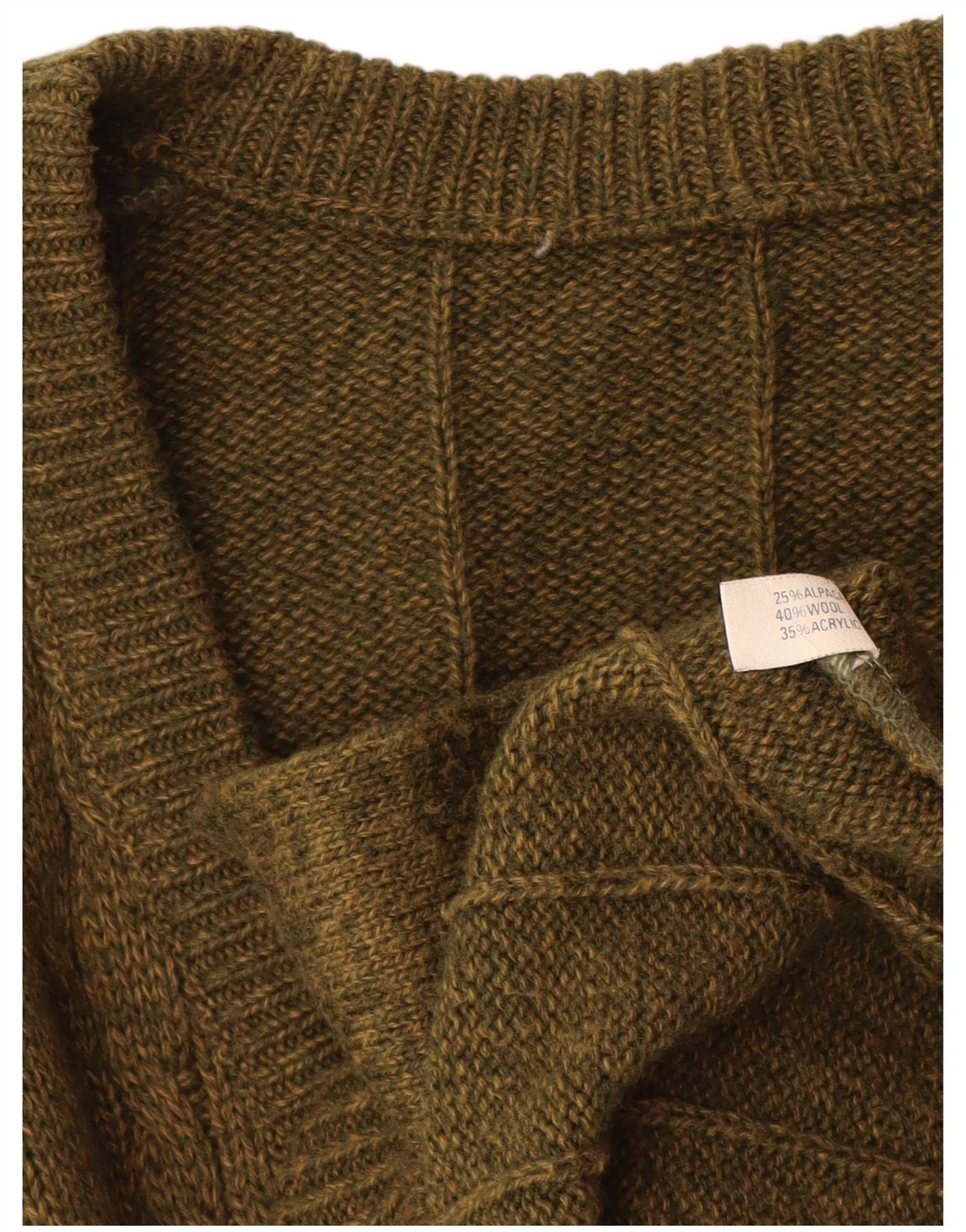 VINTAGE Mens Cardigan Sweater Large Khaki Alpaca Wool