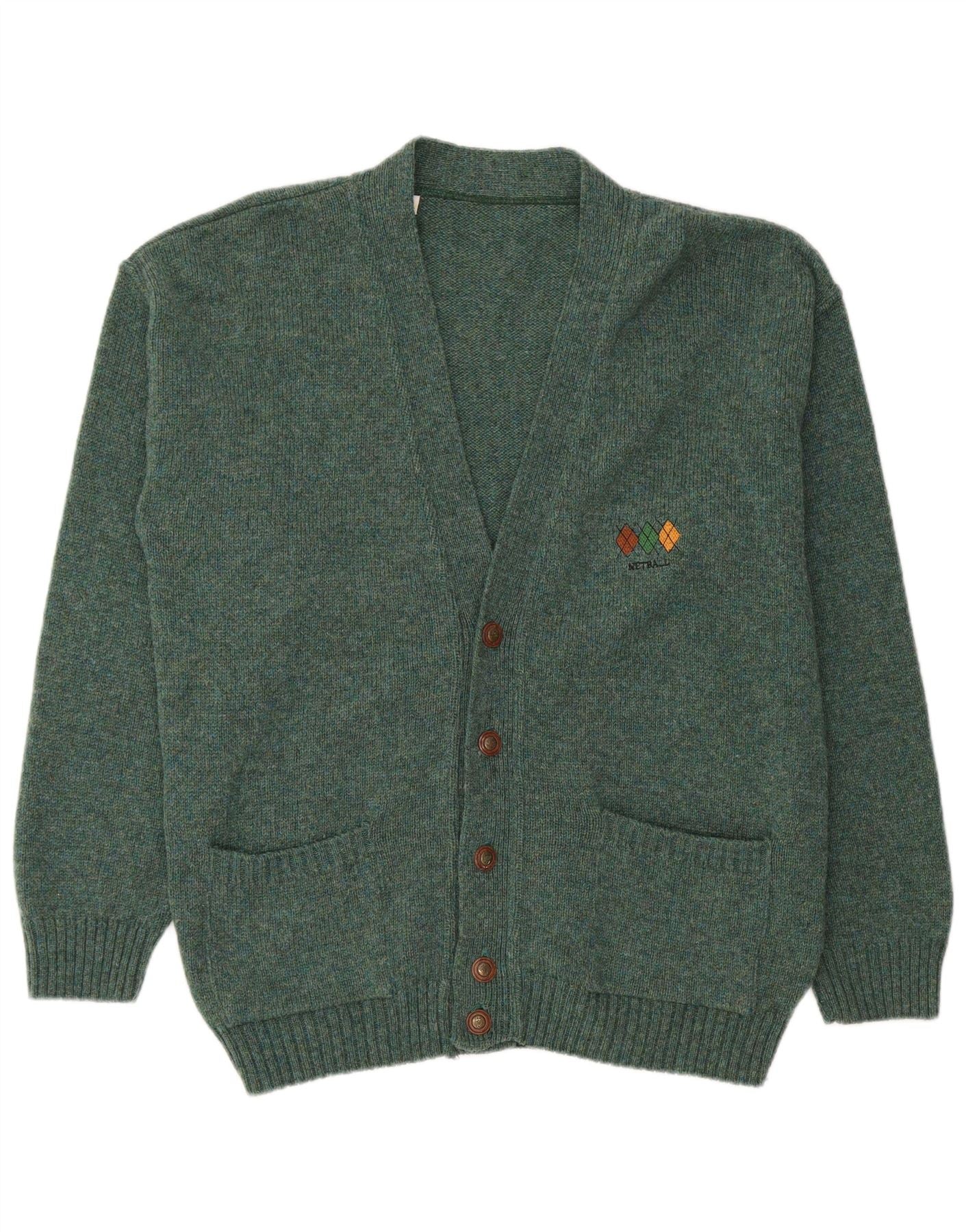 VINTAGE Mens Cardigan Sweater XL Green Wool