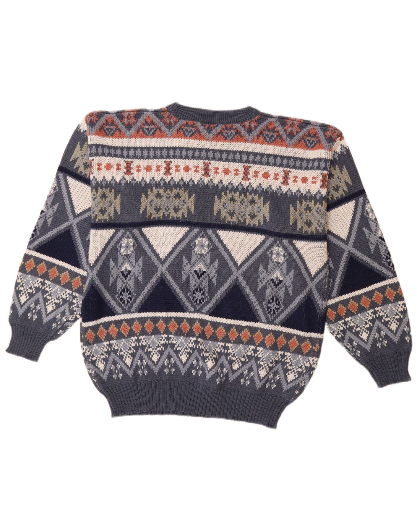 VINTAGE Mens Crew Neck Jumper Sweater IT 48/50 Medium Navy Blue Fair Isle