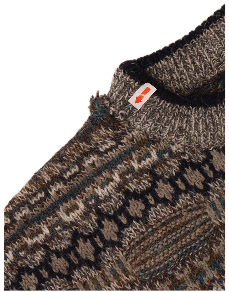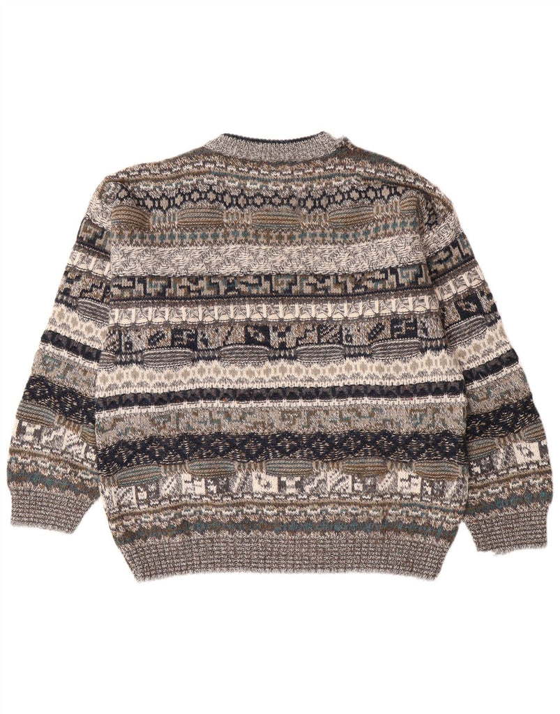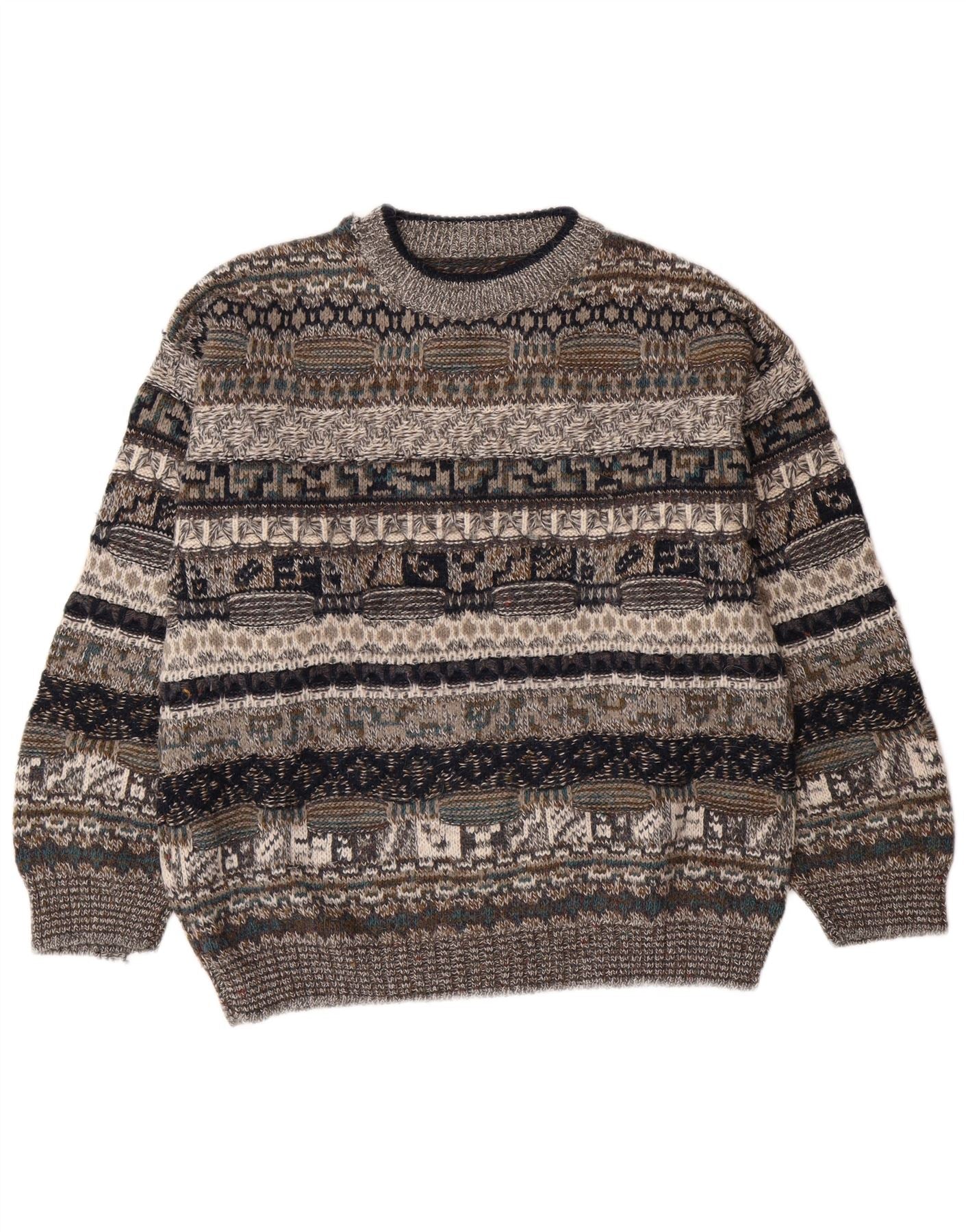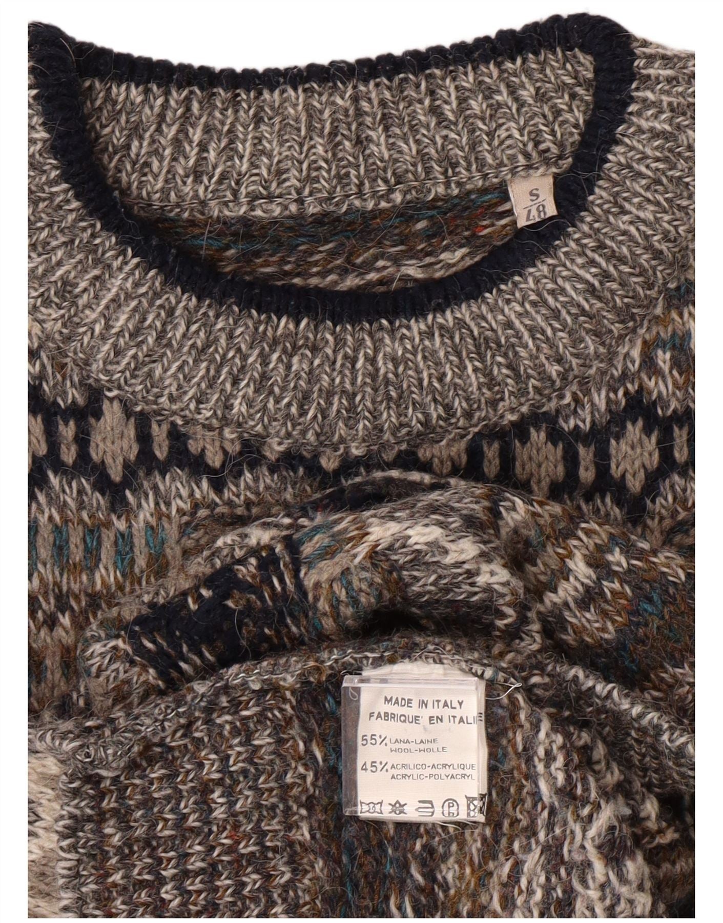 VINTAGE Mens Crew Neck Jumper Sweater IT 48 Small Grey Geometric Wool