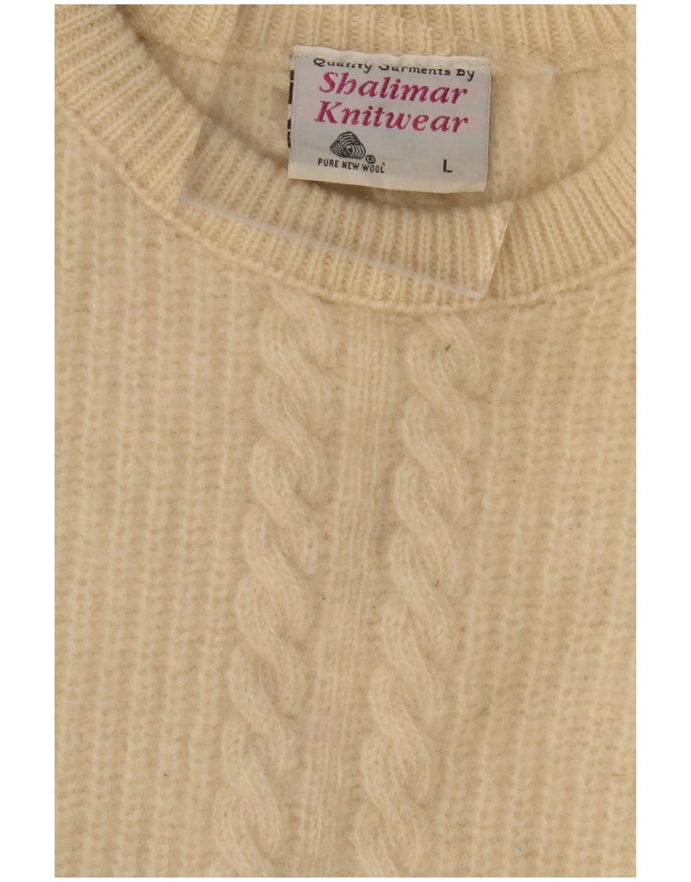 VINTAGE Mens Crew Neck Jumper Sweater Large Beige New Wool