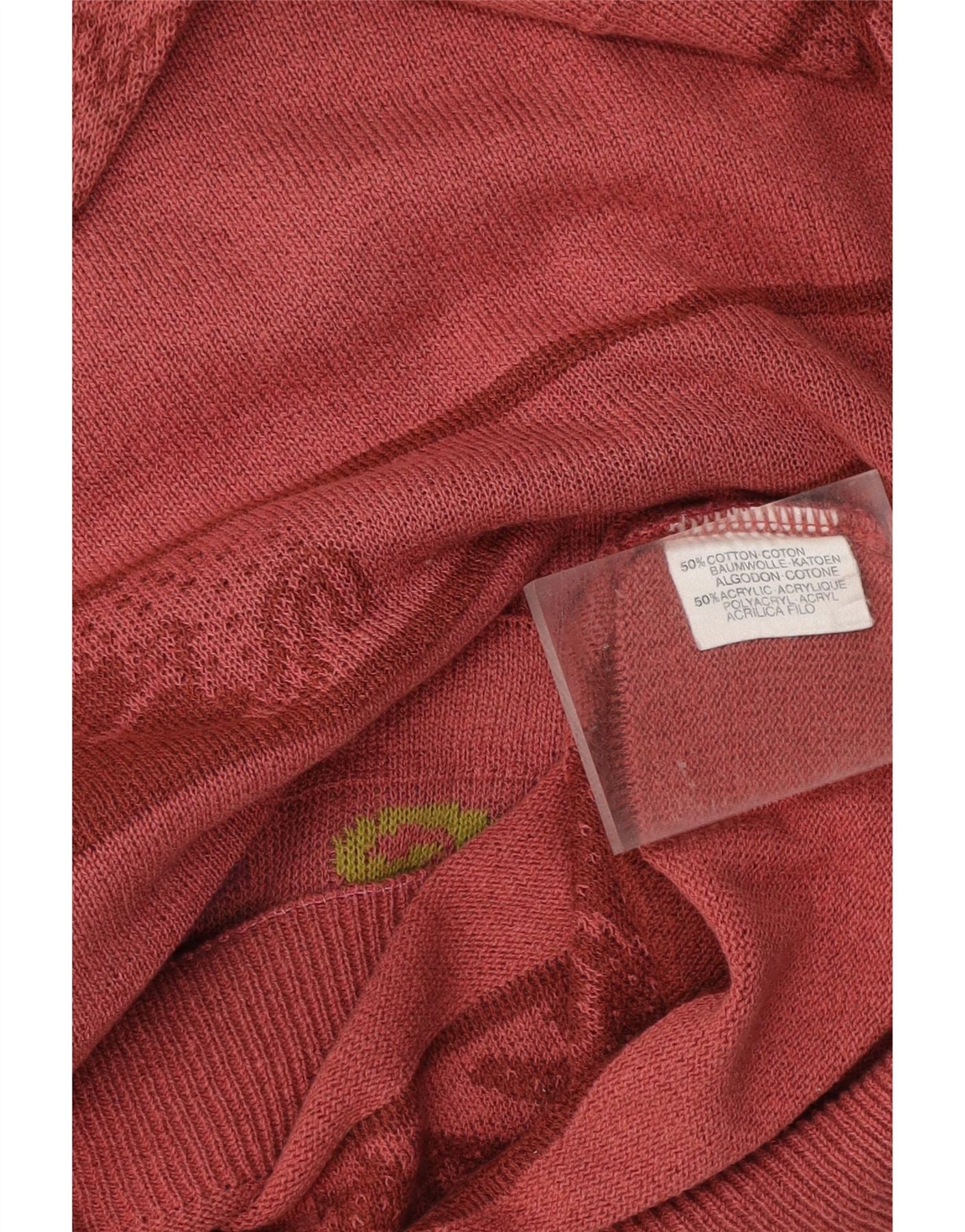 VINTAGE Mens Crew Neck Jumper Sweater Large Burgundy Striped Cotton