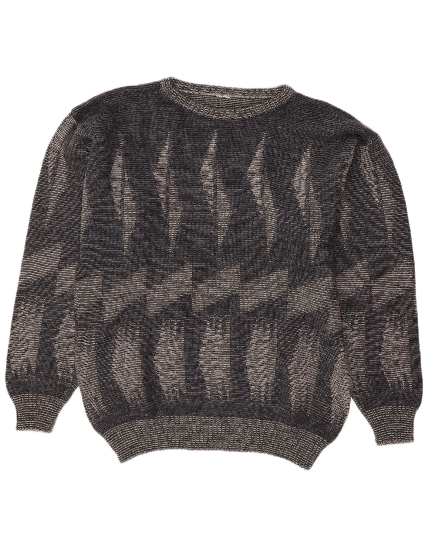 Vintage Mens Crew Neck Jumper Sweater Large Grey Geometric