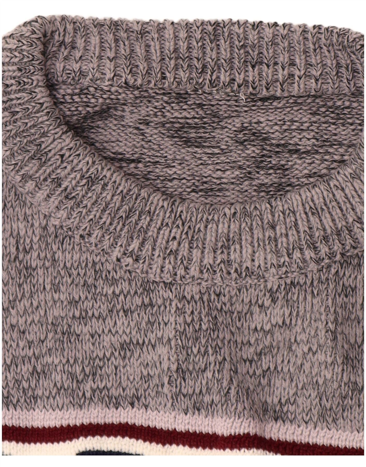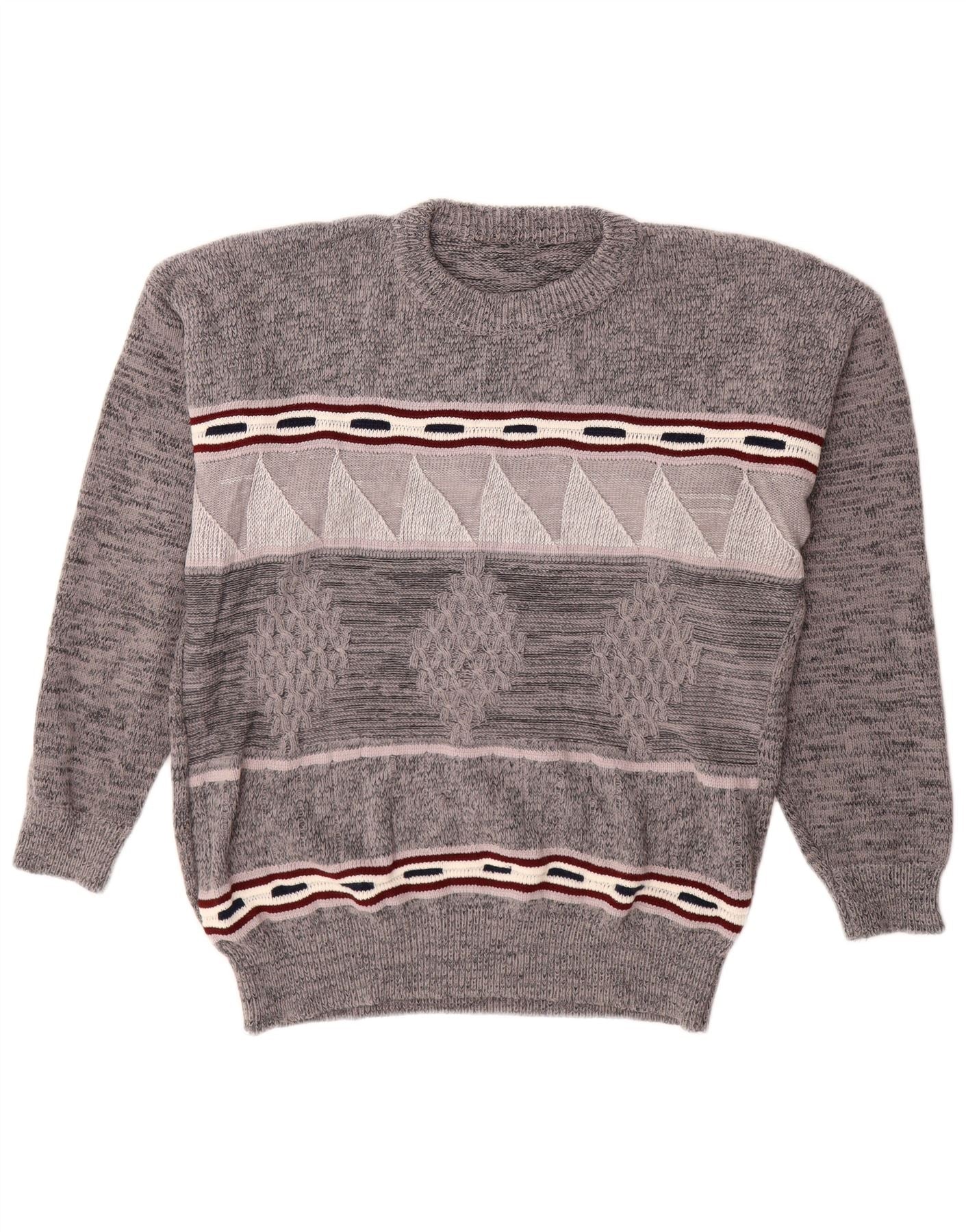 VINTAGE Mens Crew Neck Jumper Sweater Large Grey Geometric