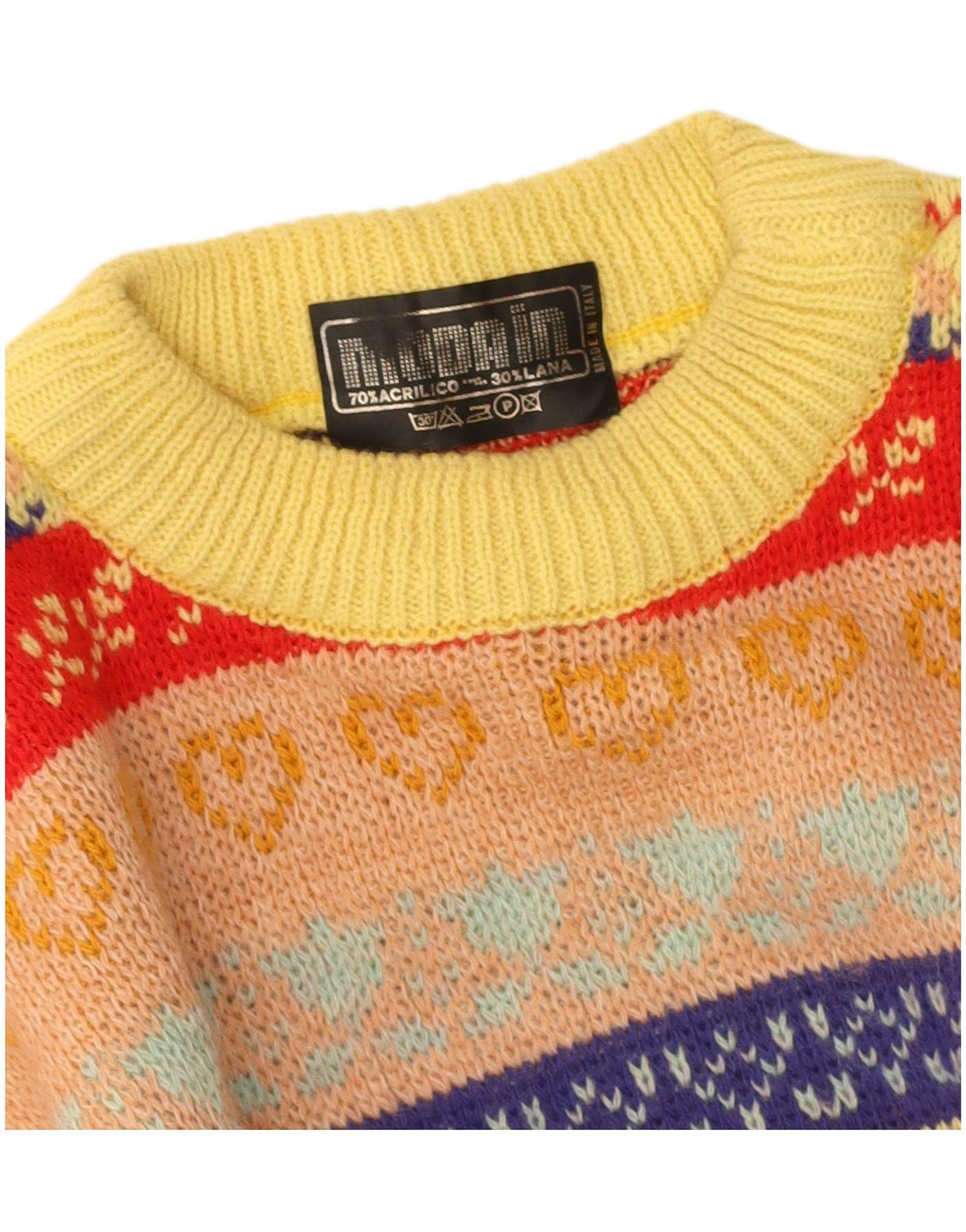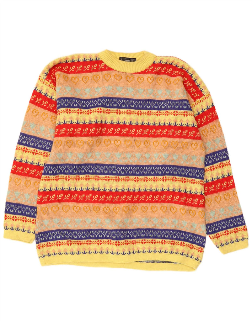 VINTAGE Mens Crew Neck Jumper Sweater Large Multicoloured Fair Isle