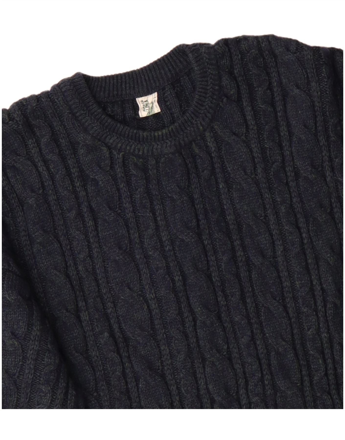 VINTAGE Mens Crew Neck Jumper Sweater Large Navy Blue Acrylic