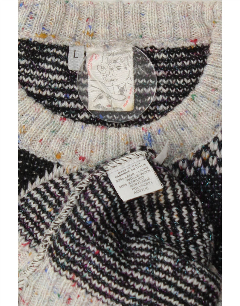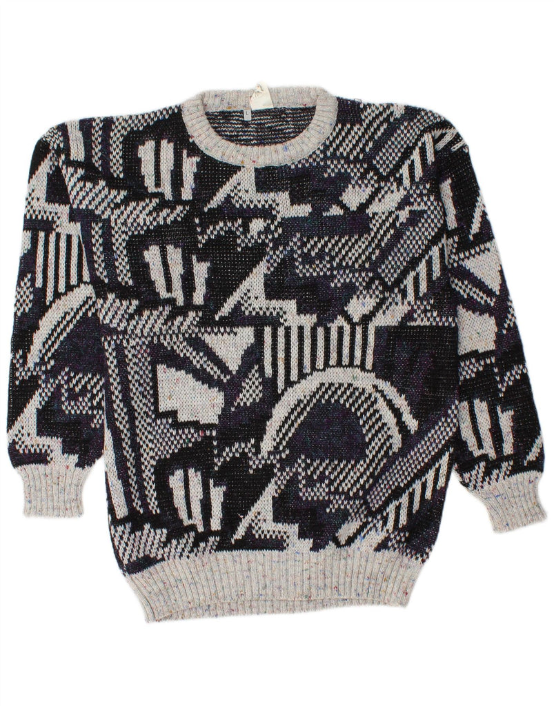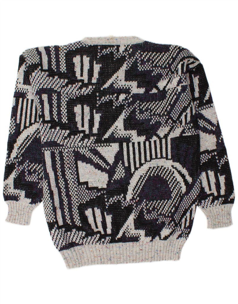 VINTAGE Mens Crew Neck Jumper Sweater Large Navy Blue Geometric Wool