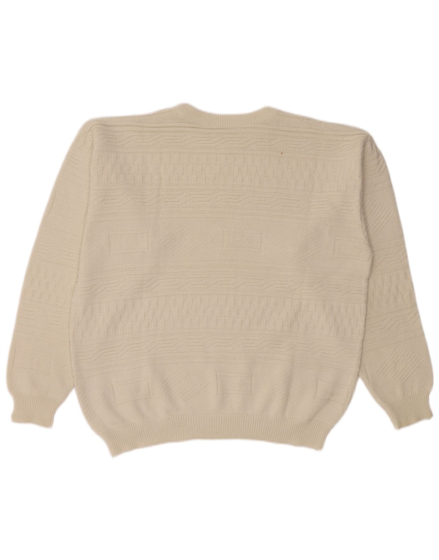 VINTAGE Mens Crew Neck Jumper Sweater Large White Geometric Cotton