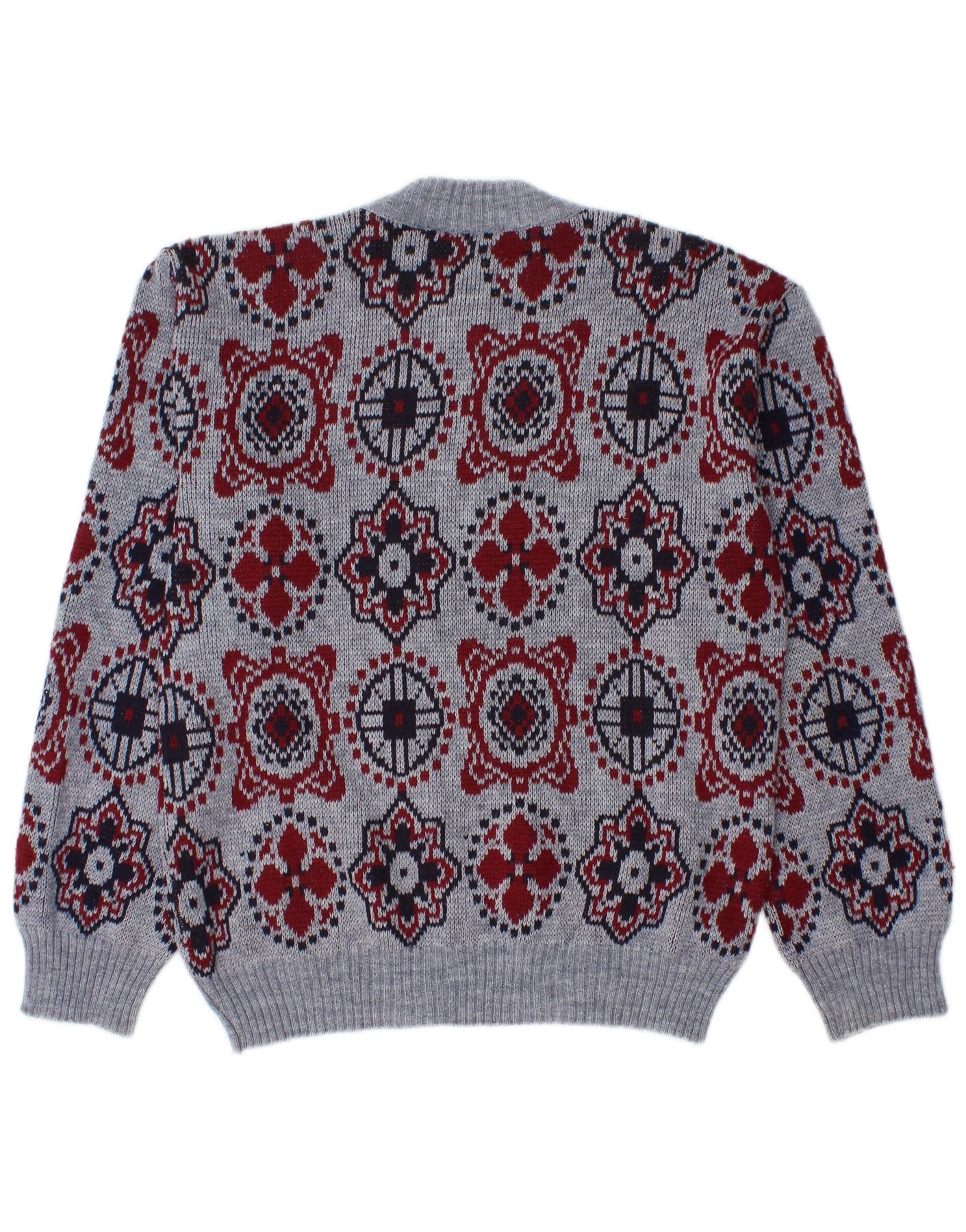 VINTAGE Mens Crew Neck Jumper Sweater Medium Blue Fair Isle