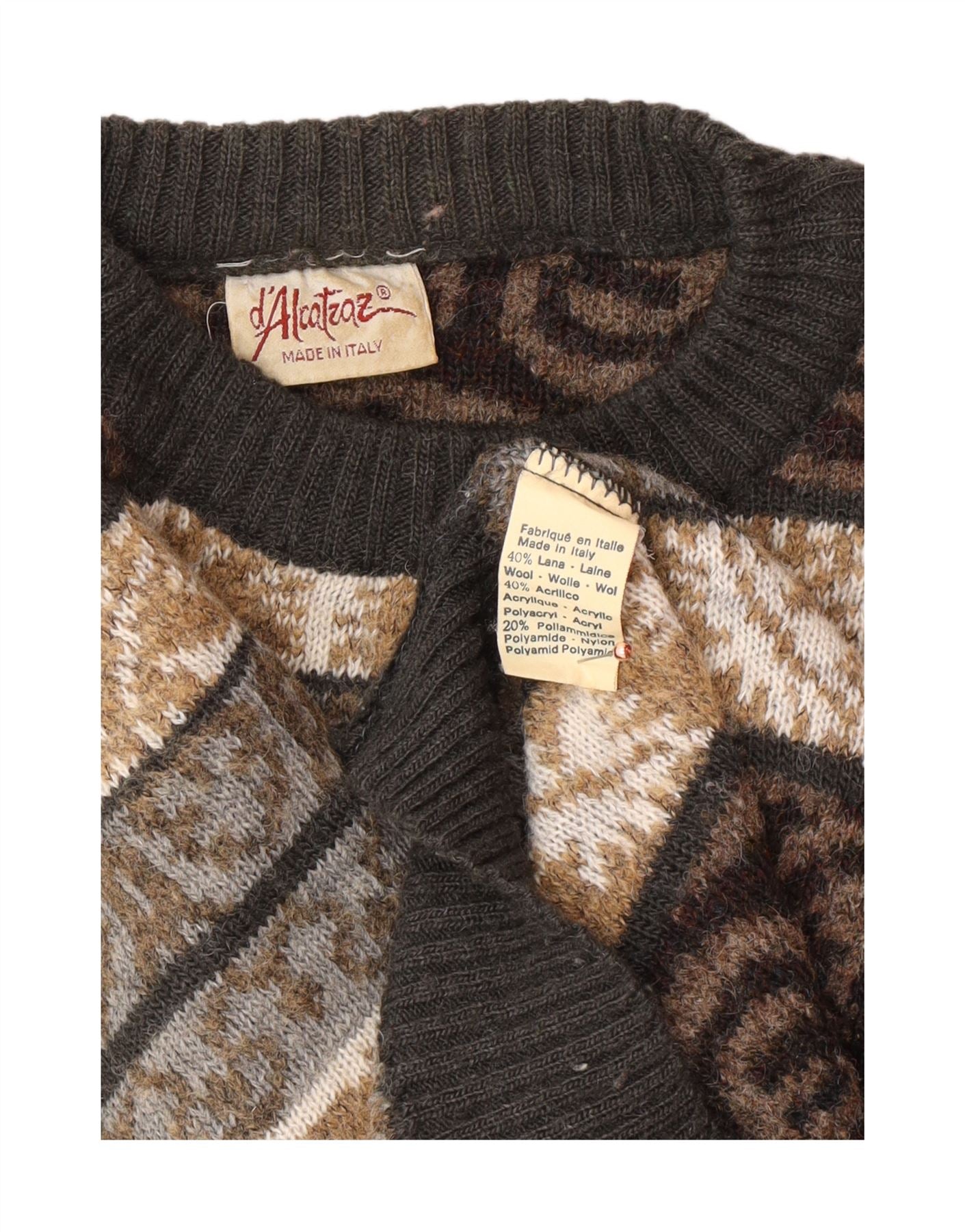 VINTAGE Mens Crew Neck Jumper Sweater Medium Multicoloured Fair Isle Wool