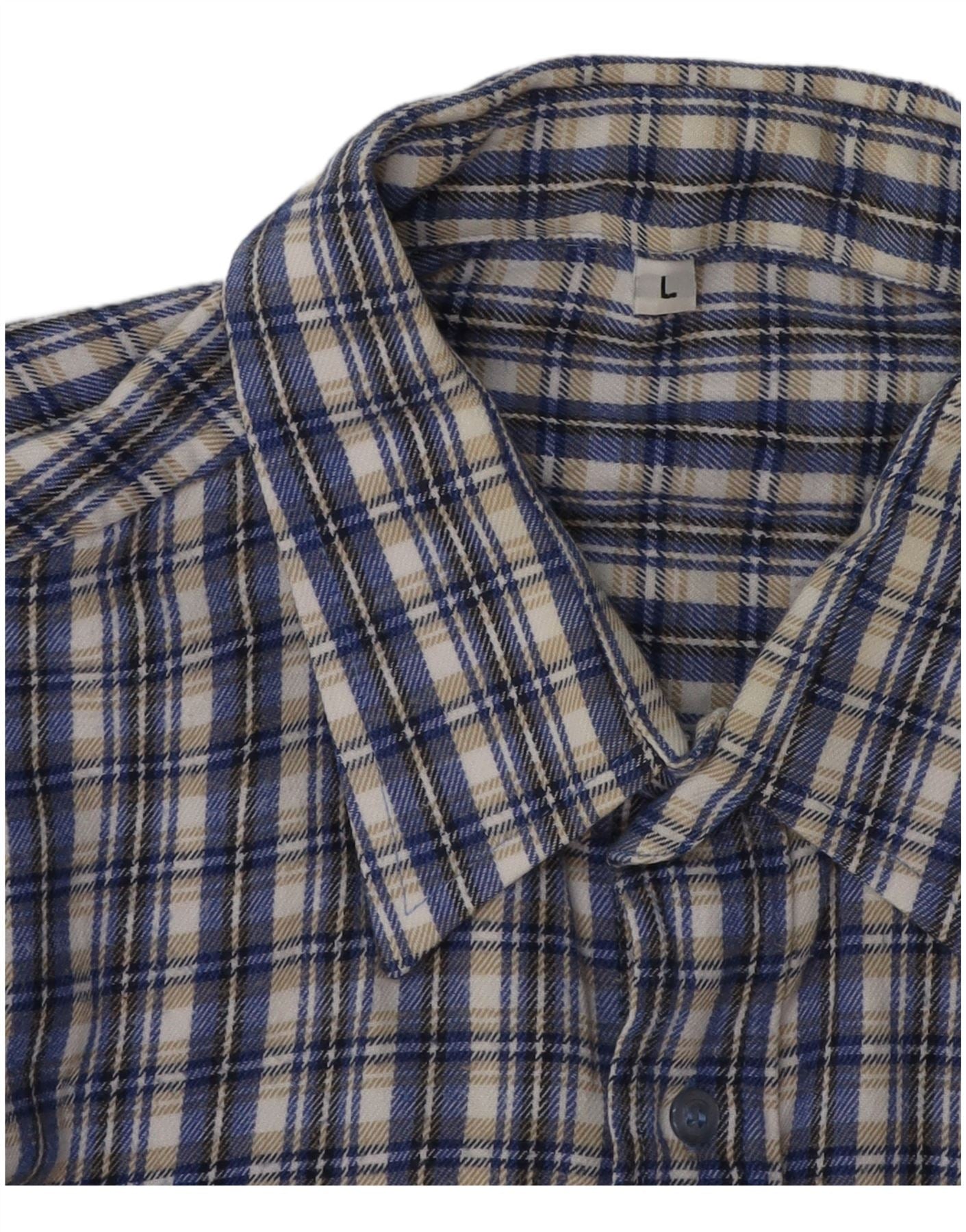 VINTAGE Mens Flannel Shirt Large Blue Check