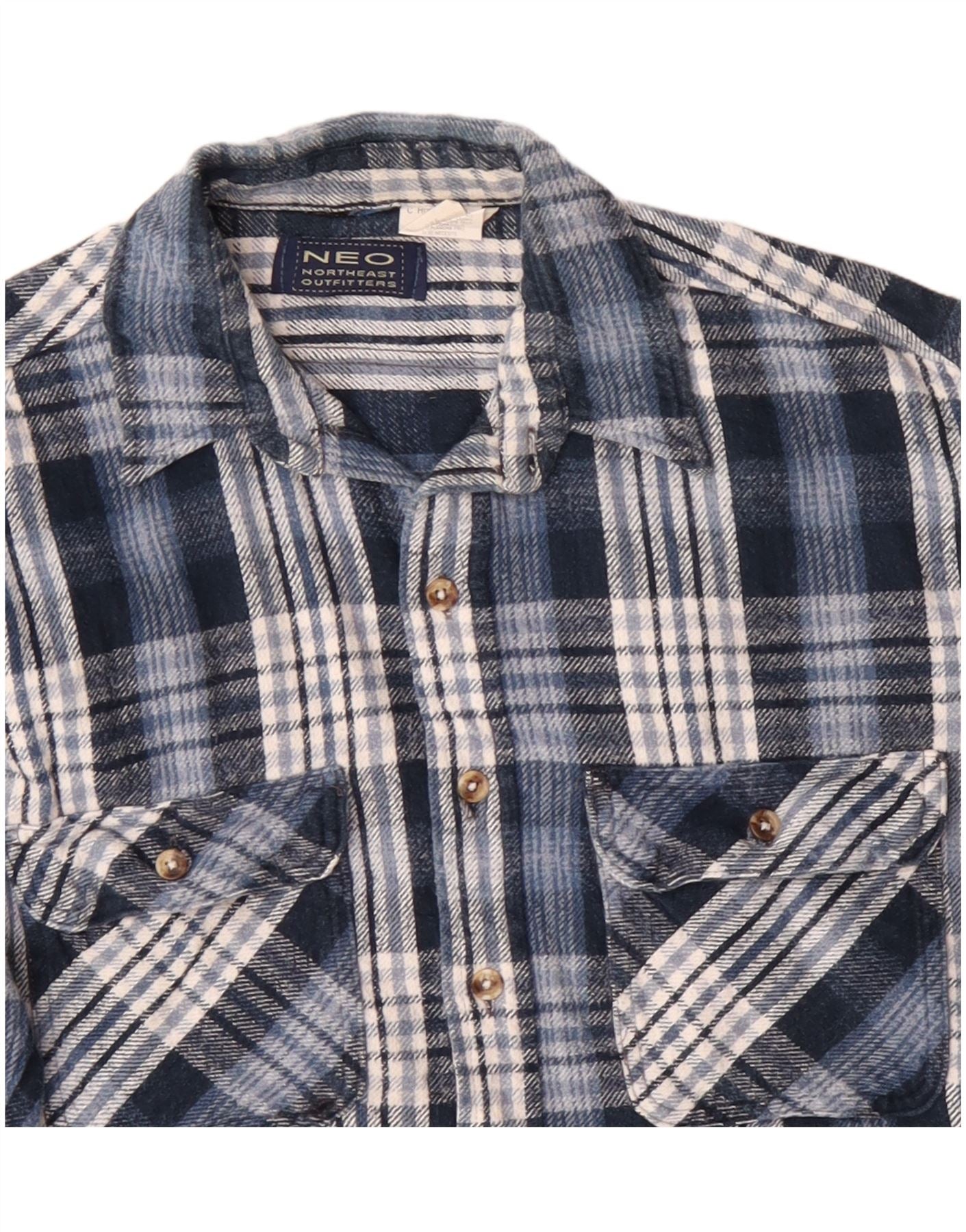 VINTAGE Mens Flannel Shirt Large Blue Check Cotton