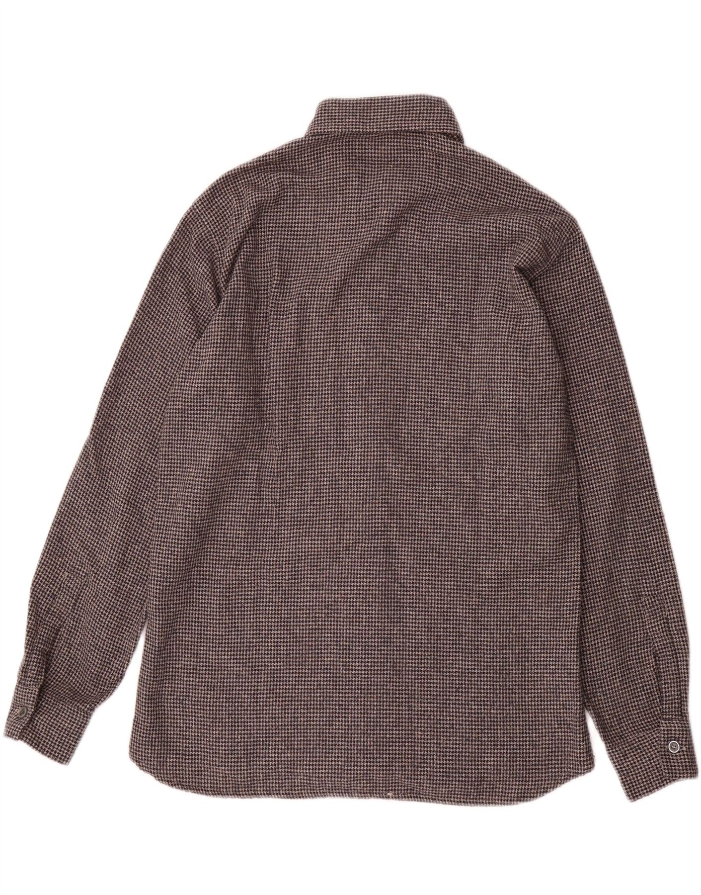 VINTAGE Mens Flannel Shirt Size 40 Medium Grey Houndstooth