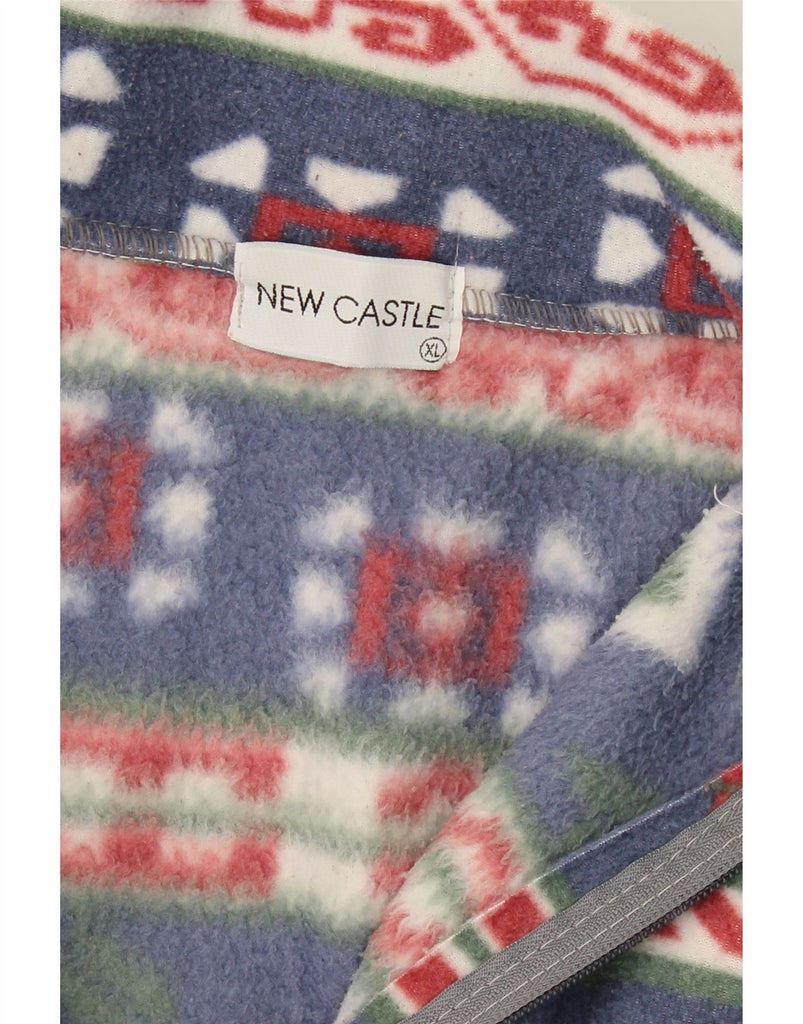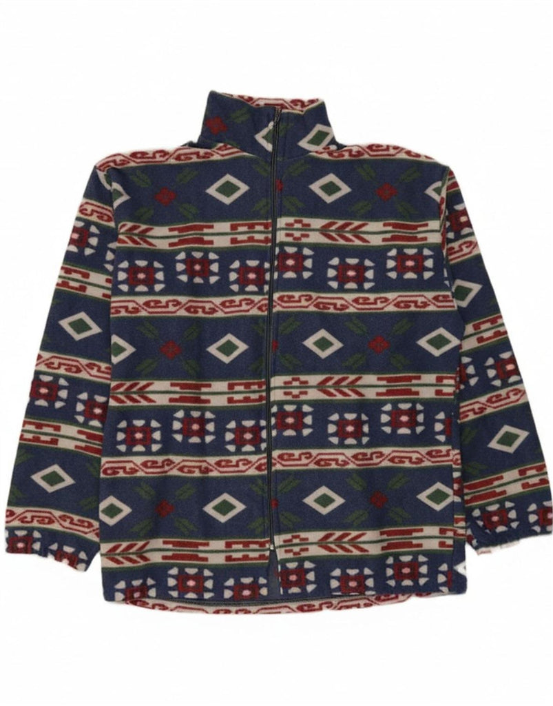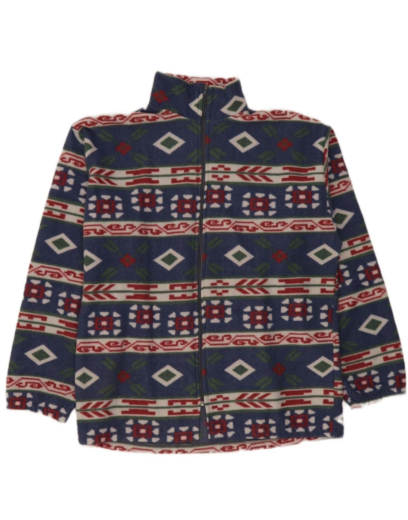 VINTAGE Mens Fleece Jacket UK 18 XL Navy Blue Fair Isle