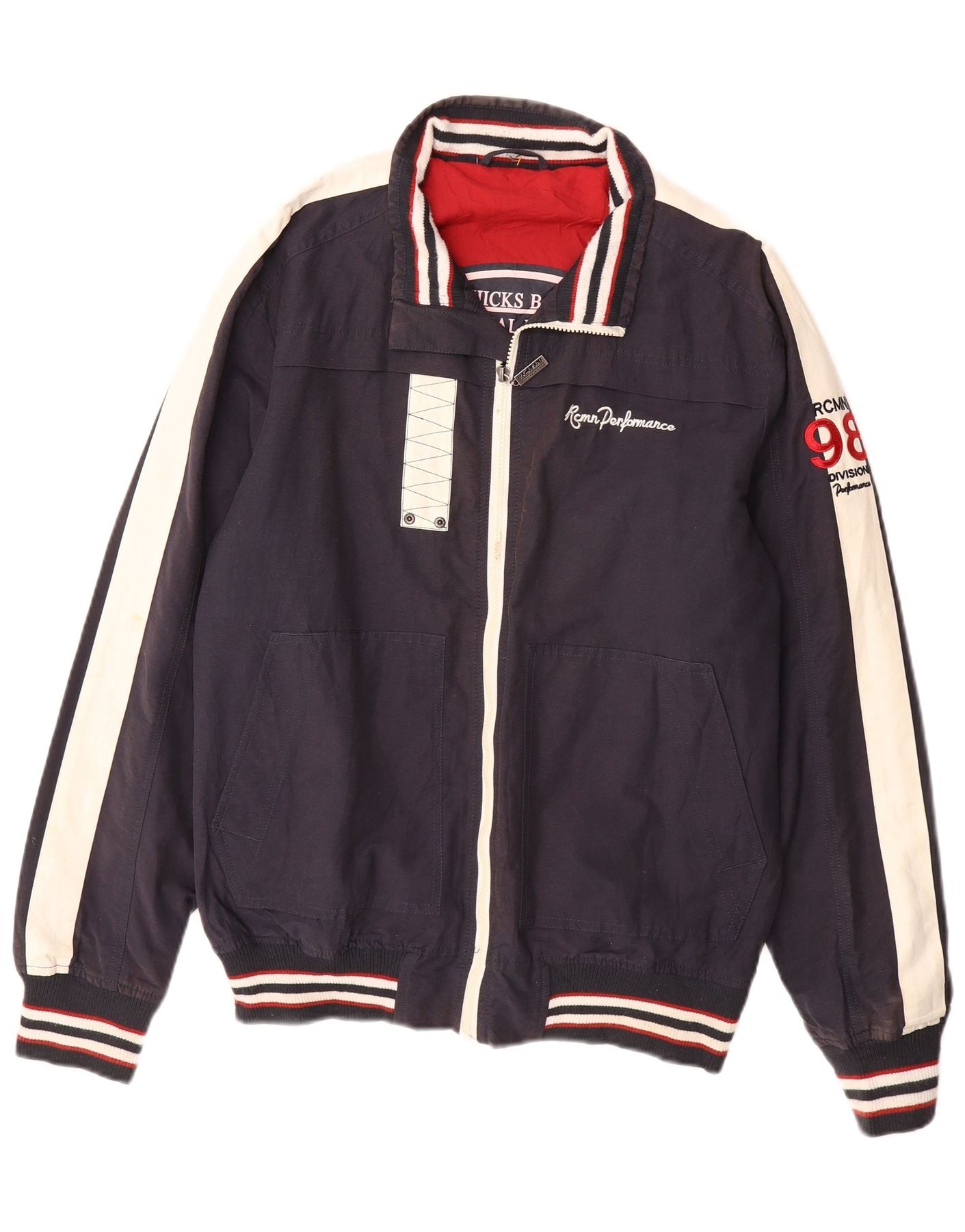 VINTAGE Mens Graphic Bomber Jacket UK 38 Medium Navy Blue Colourblock