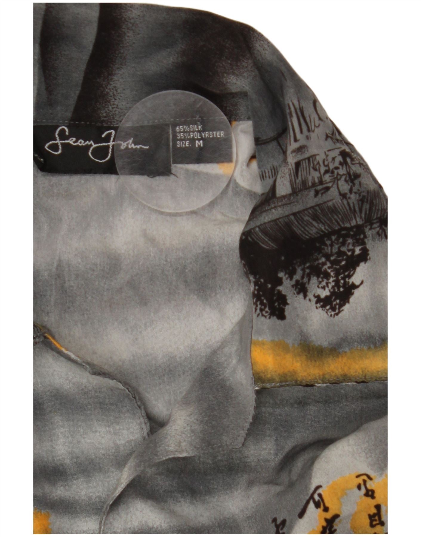 VINTAGE Mens Graphic Short Sleeve Shirt Medium Grey Silk