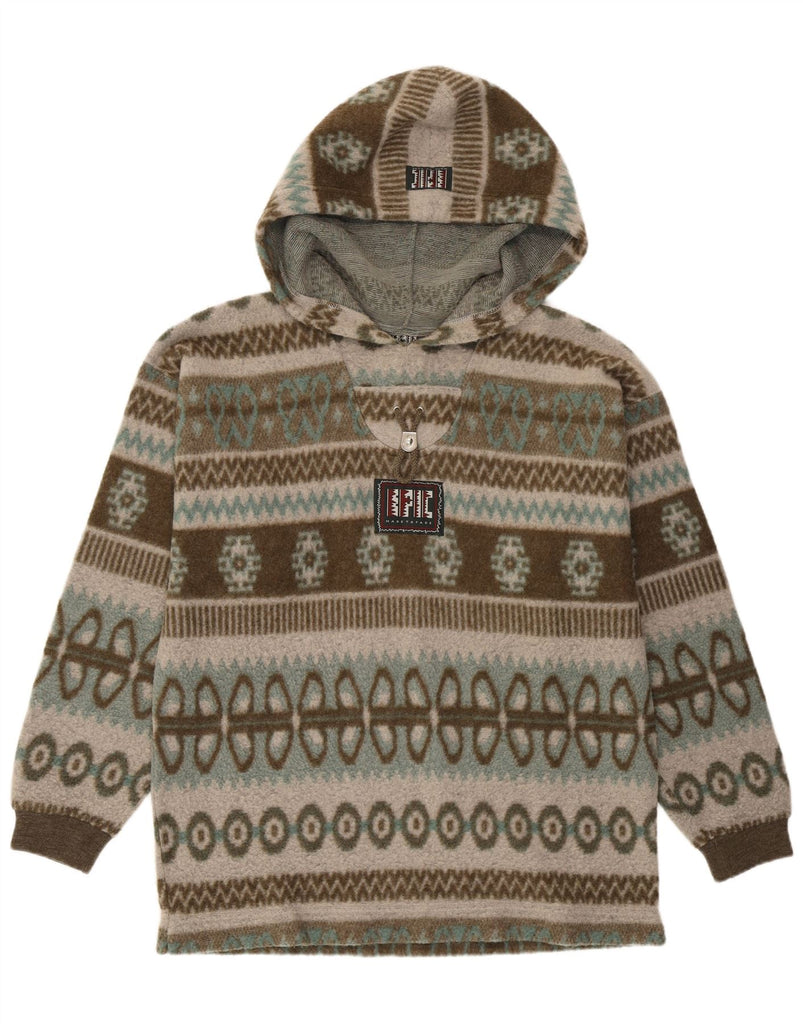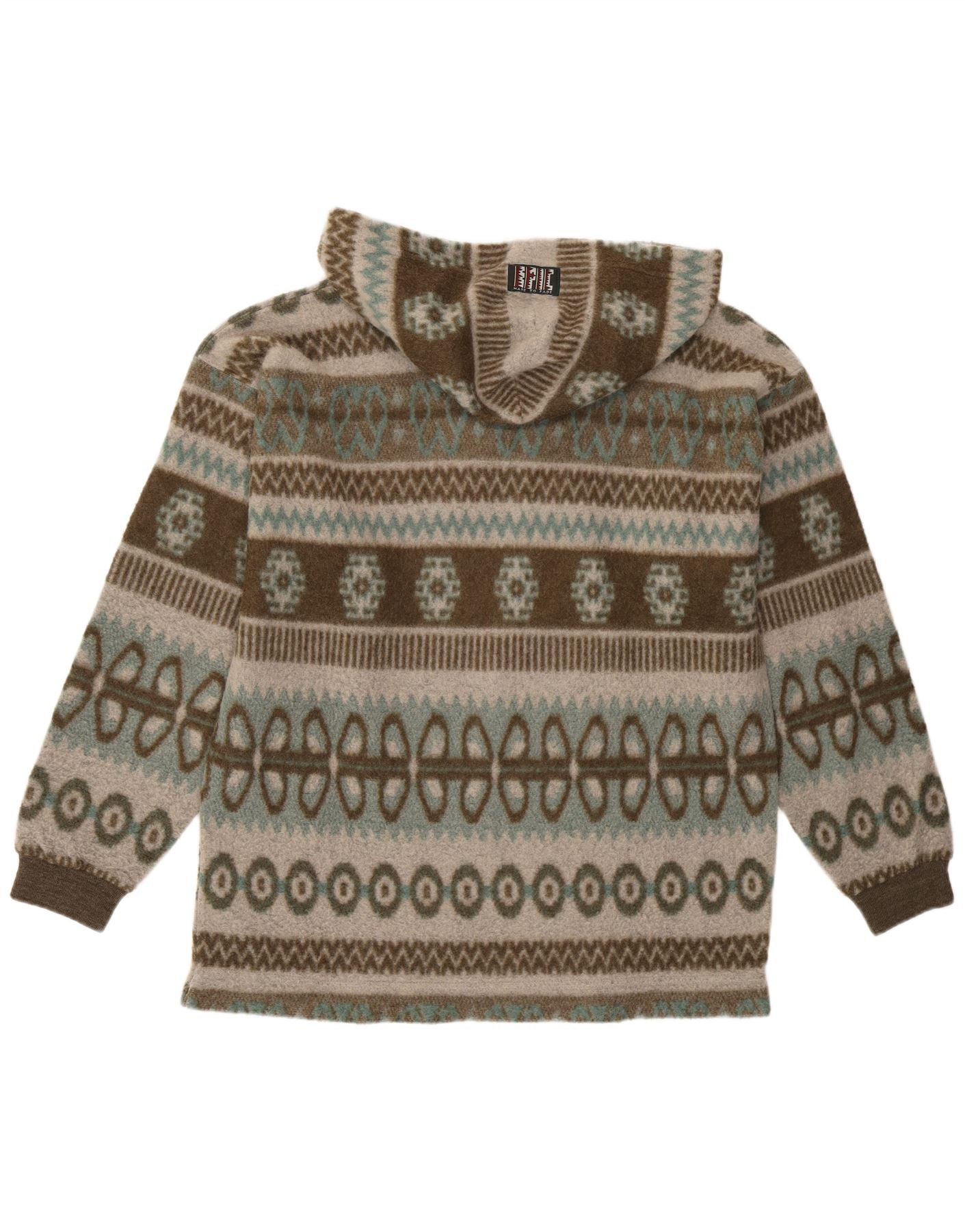 VINTAGE Mens Hooded Jumper Sweater Large Multicoloured Fair Isle Wool