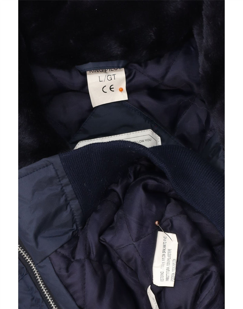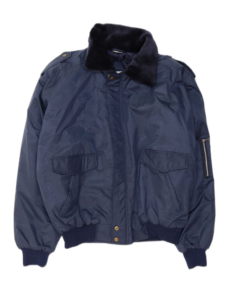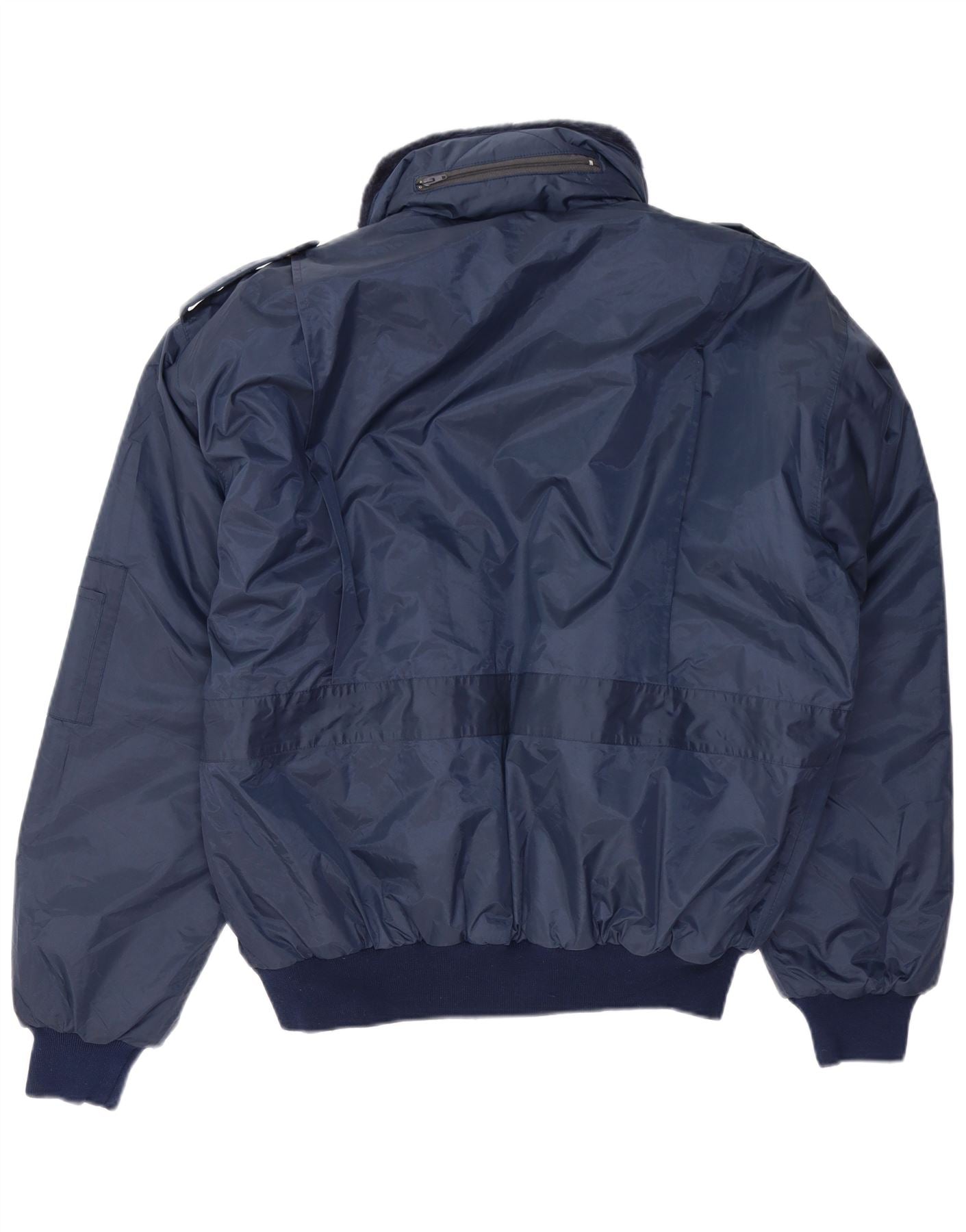 VINTAGE Mens Hooded Military Bomber Jacket UK 40 Large Navy Blue Nylon