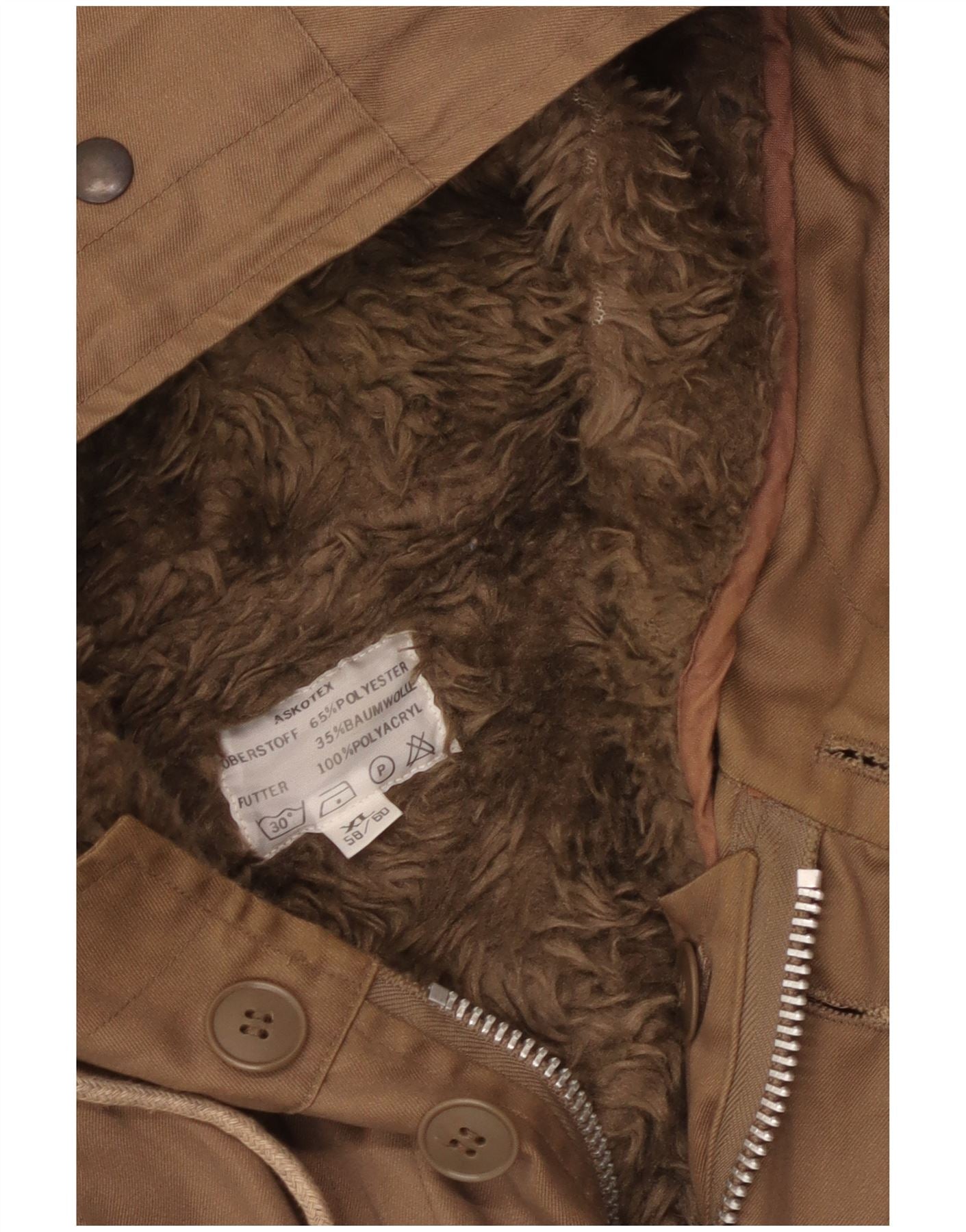 VINTAGE Mens Hooded Sherpa Parka Jacket UK 42 XL Brown Cotton