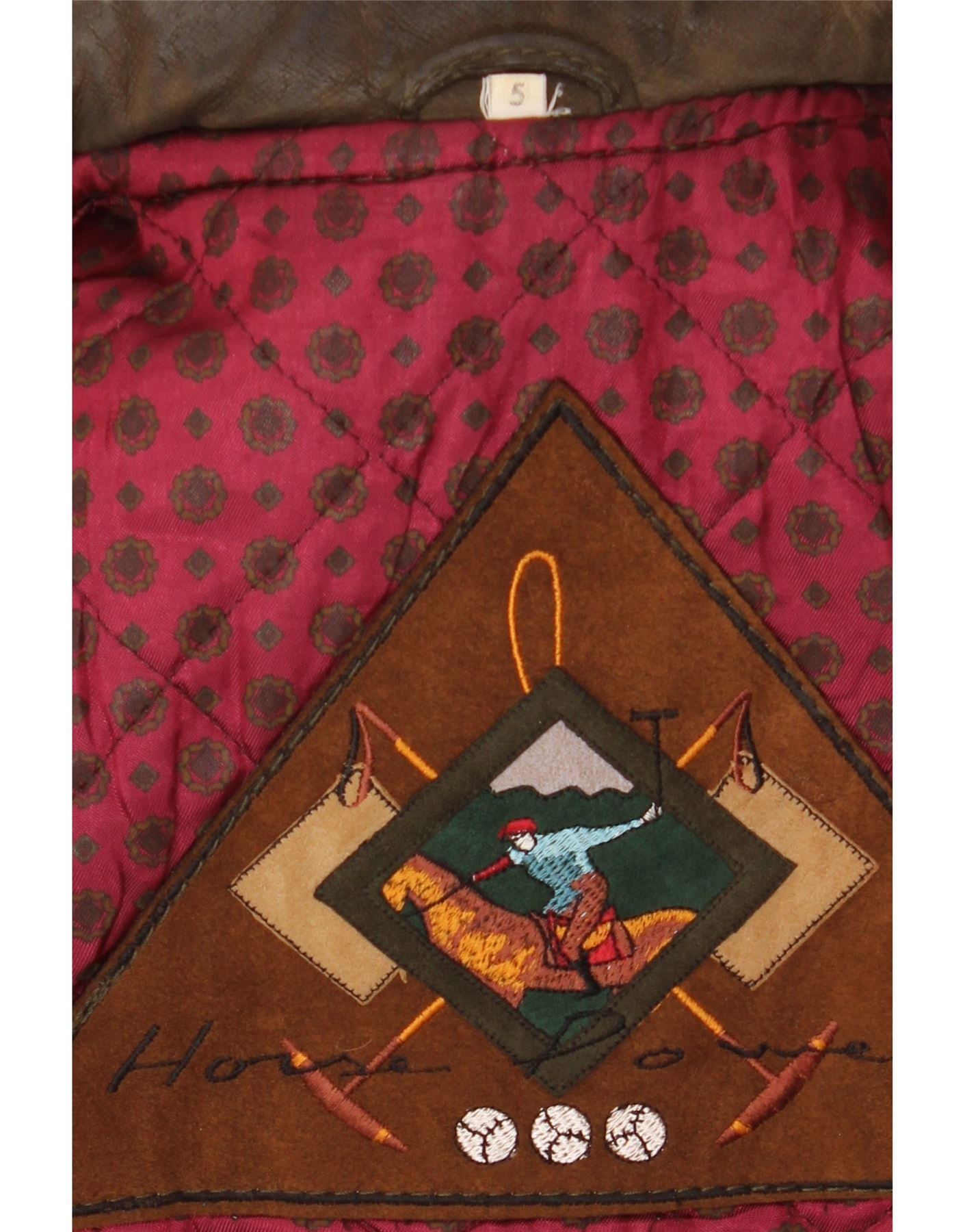 Vintage Mens Knit Leather Jacket UK 42 XL Khaki Colourblock Classic