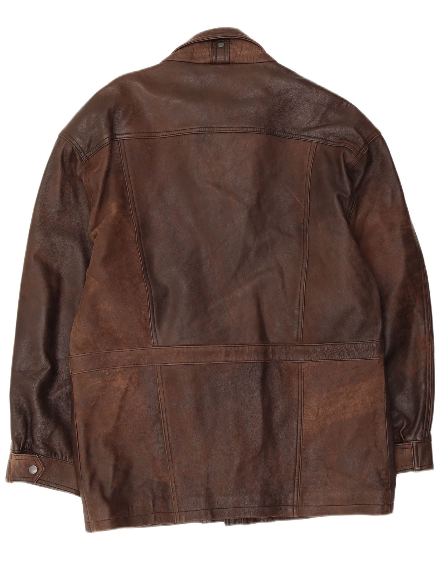 VINTAGE Mens Leather Coat EU 50 Large Brown Leather