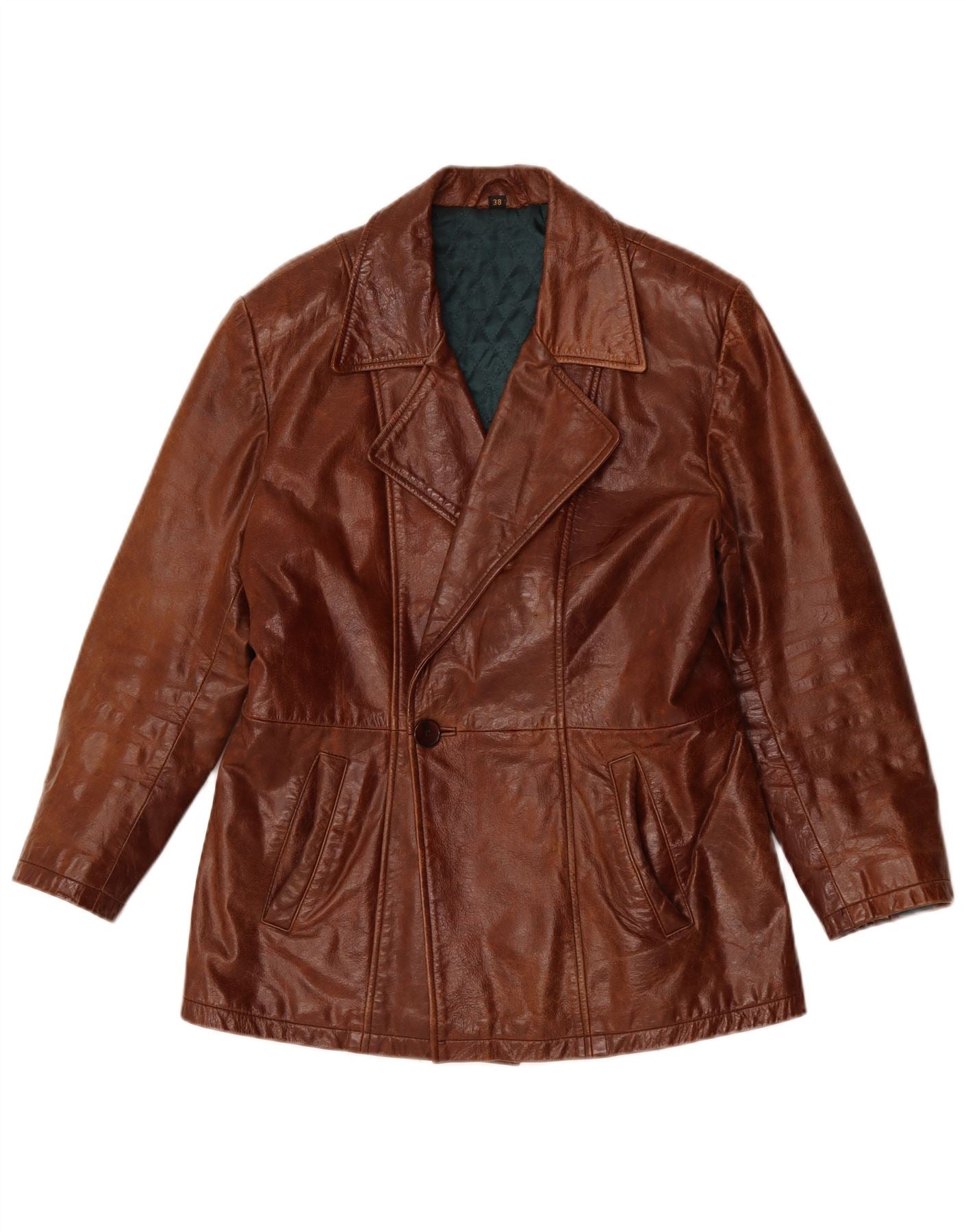 VINTAGE Mens Leather Coat UK 38 Medium Brown Leather
