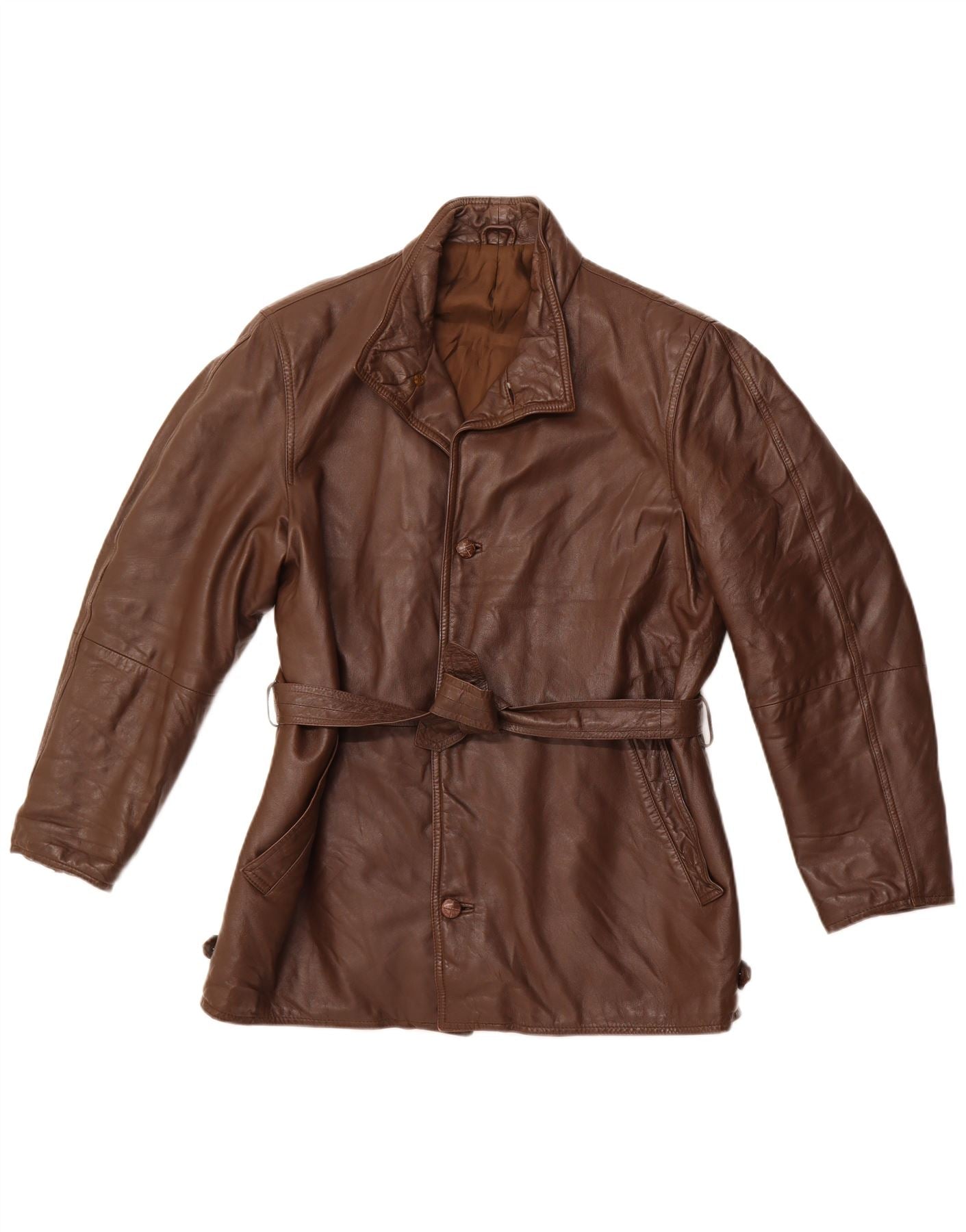 VINTAGE Mens Leather Jacket IT 50 Large Brown Leather