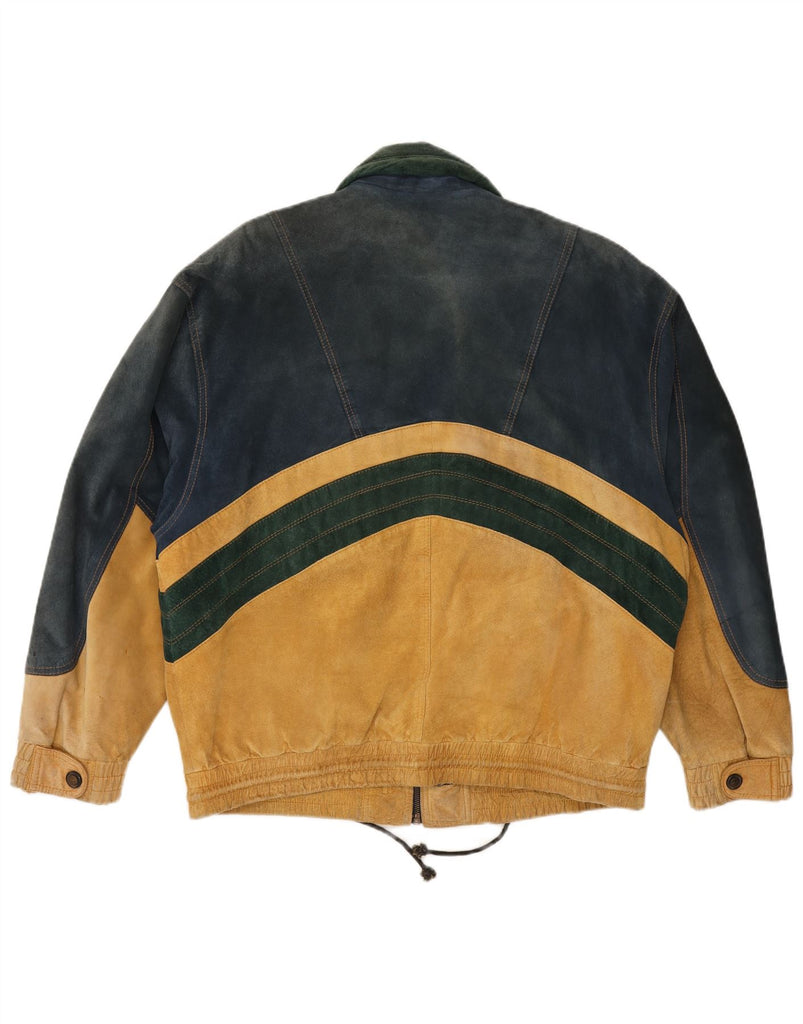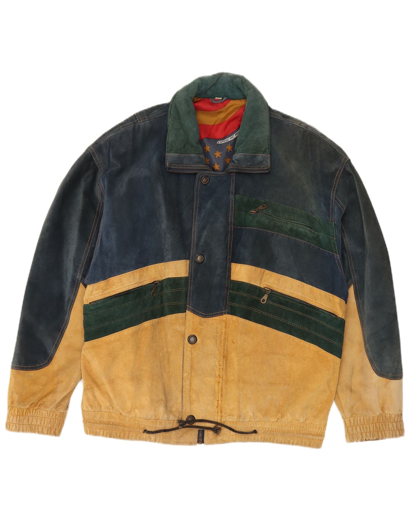 VINTAGE Mens Leather Jacket IT 52 XL Multicoloured Colourblock Leather