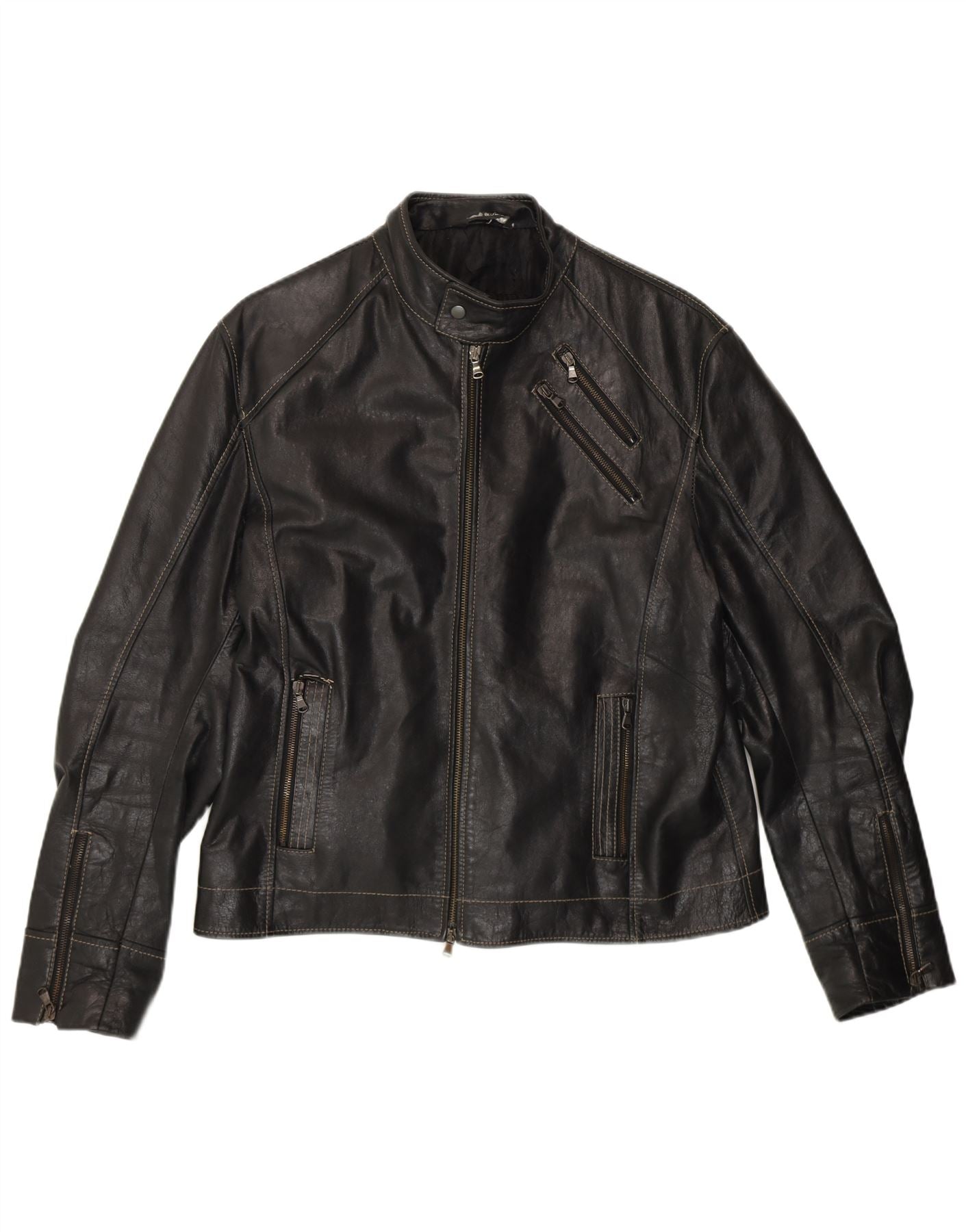 VINTAGE Mens Leather Racer Jacket UK 40 Large Black Leather