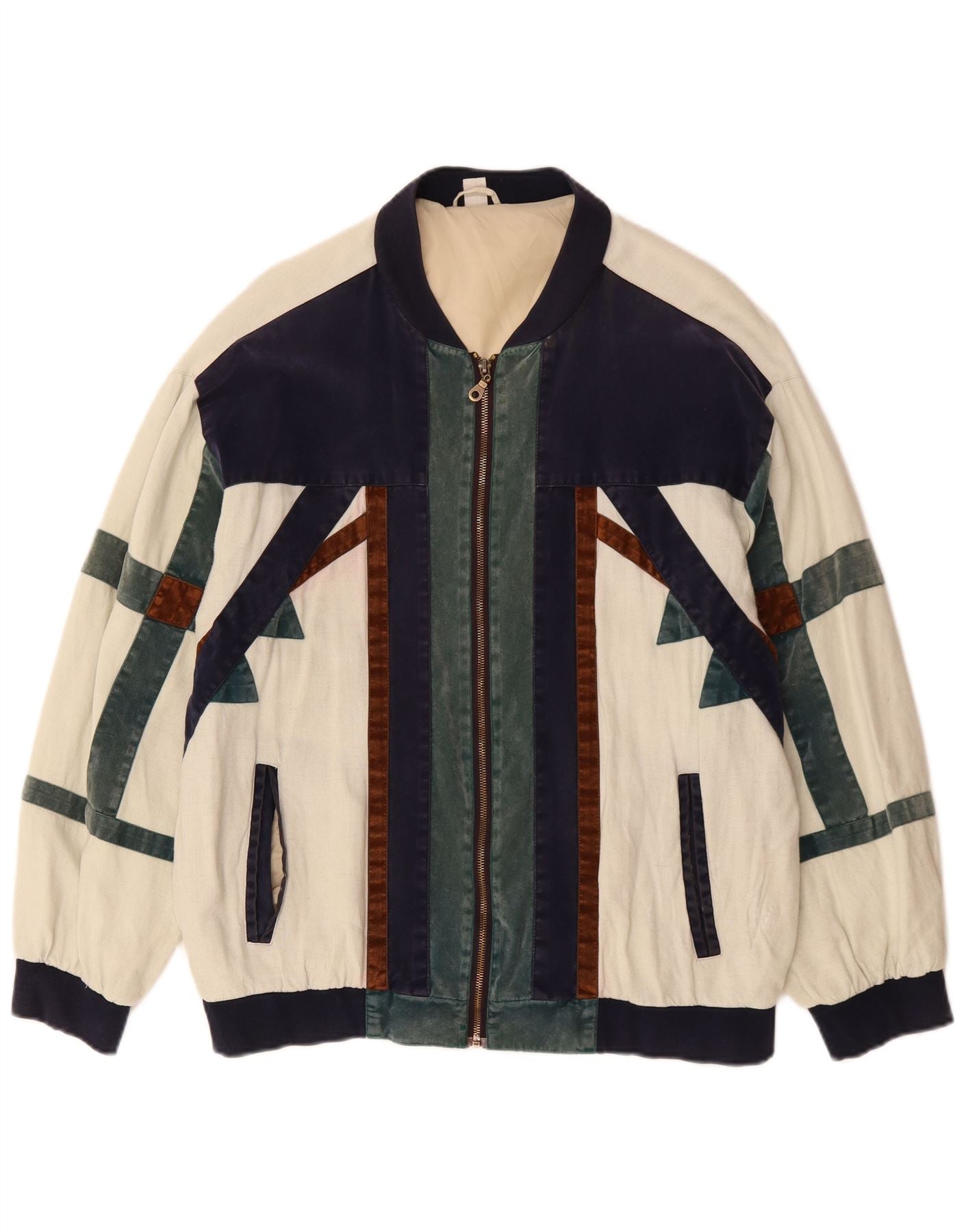 VINTAGE Mens Loose Fit Bomber Jacket UK 36 Small Off White Colourblock