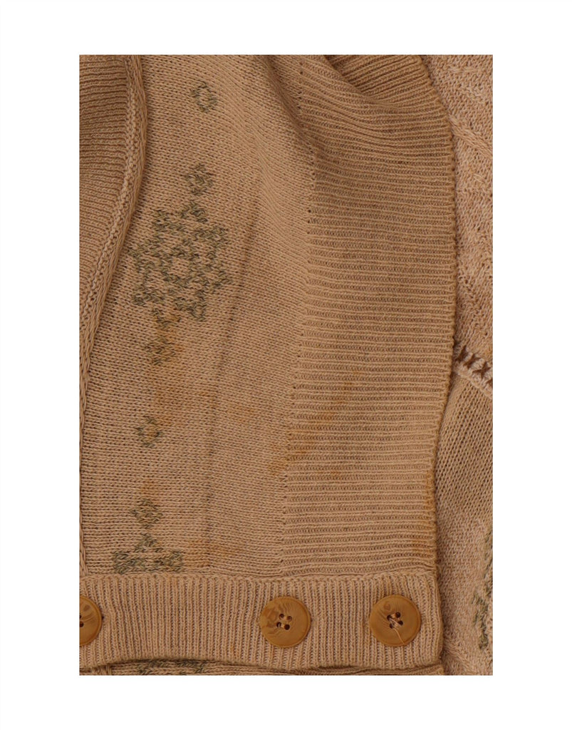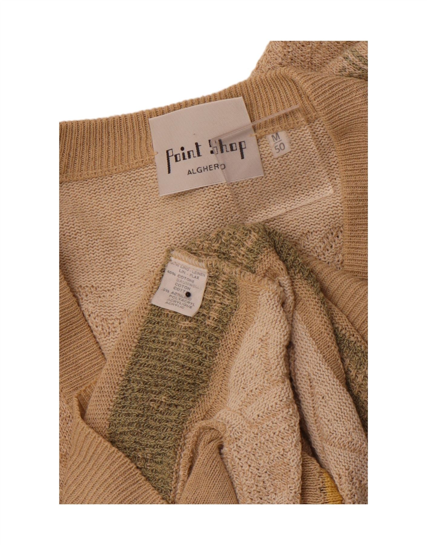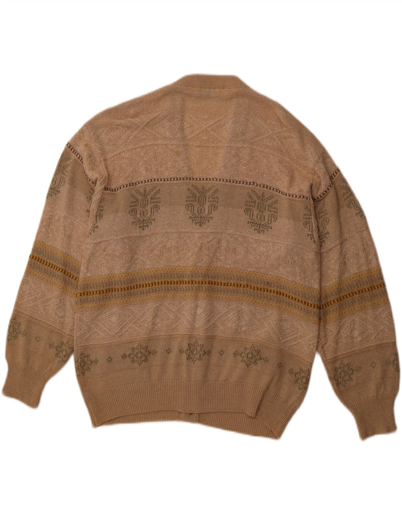 VINTAGE Mens Loose Fit Cardigan Sweater IT 50 Medium Beige Fair Isle Flax